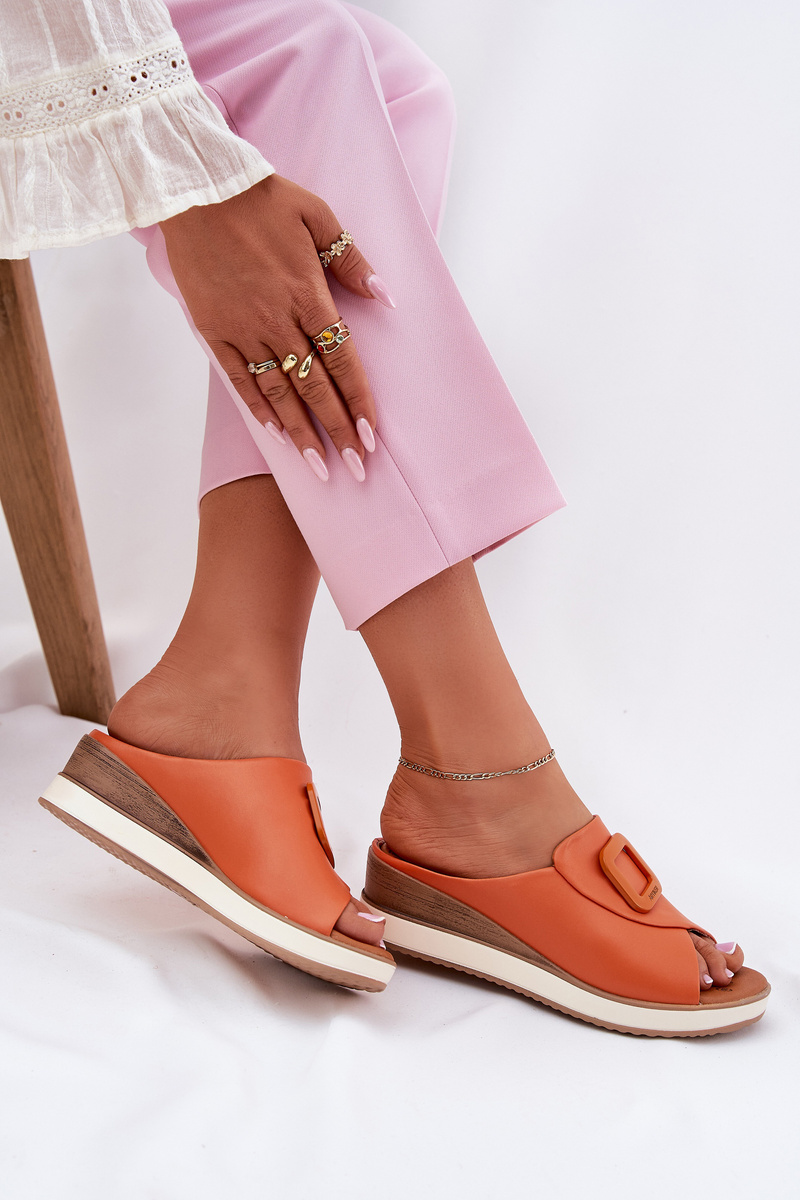 Dámske kožené sandále na klíne Artiker 56C2149 oranžové