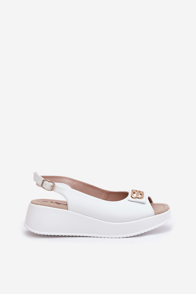Skóra naturalna - labeltak Towar wprowadzony przed 13.12.2024Tak Dámske Kožené Sandále Na Klíne S Ozdobným Detalom Biele S.Barski LR51-593