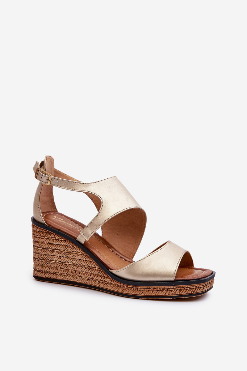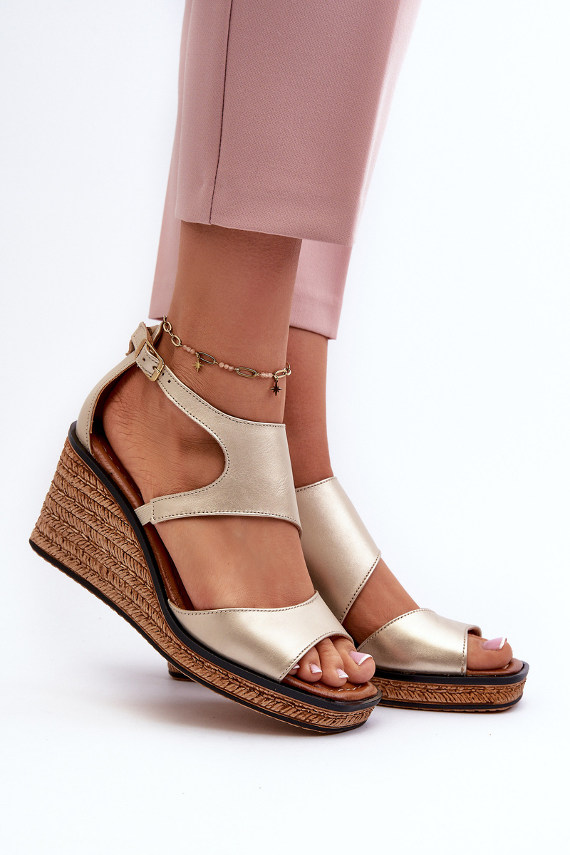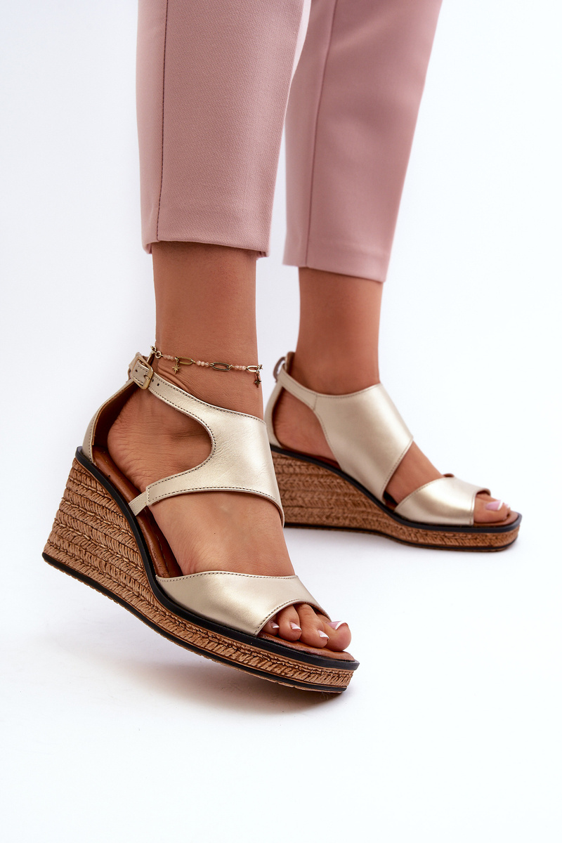 Dámske kožené sandále na klinu Maciejka 06657-25 Zlaté