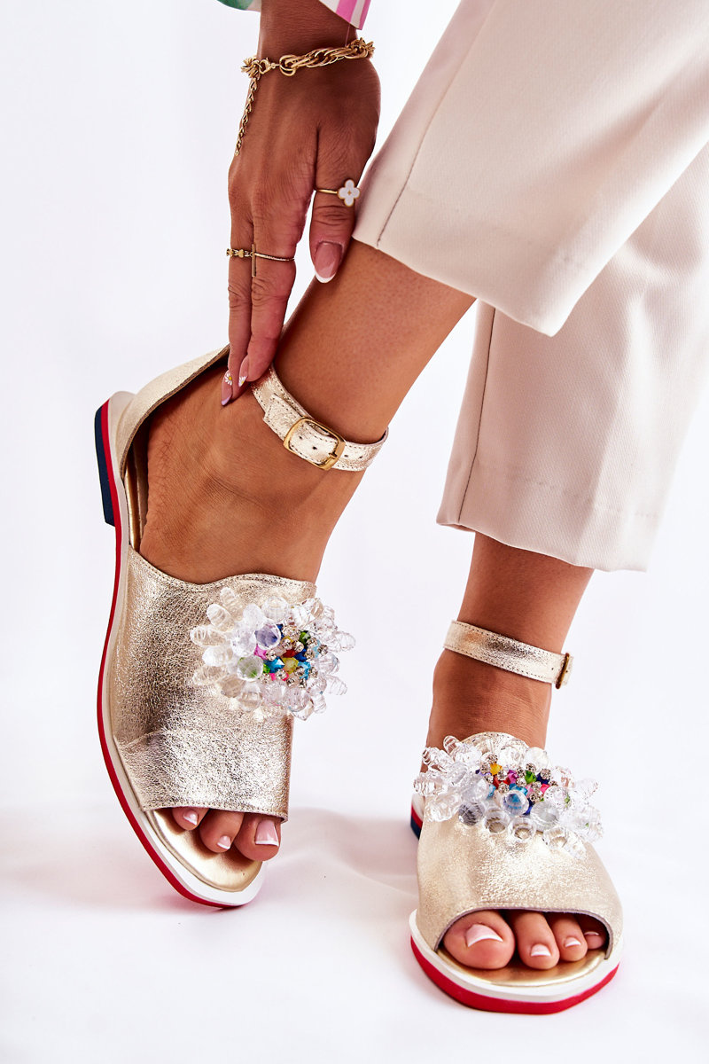 Dámske kožené sandále s ozdobou Golden Nevassa