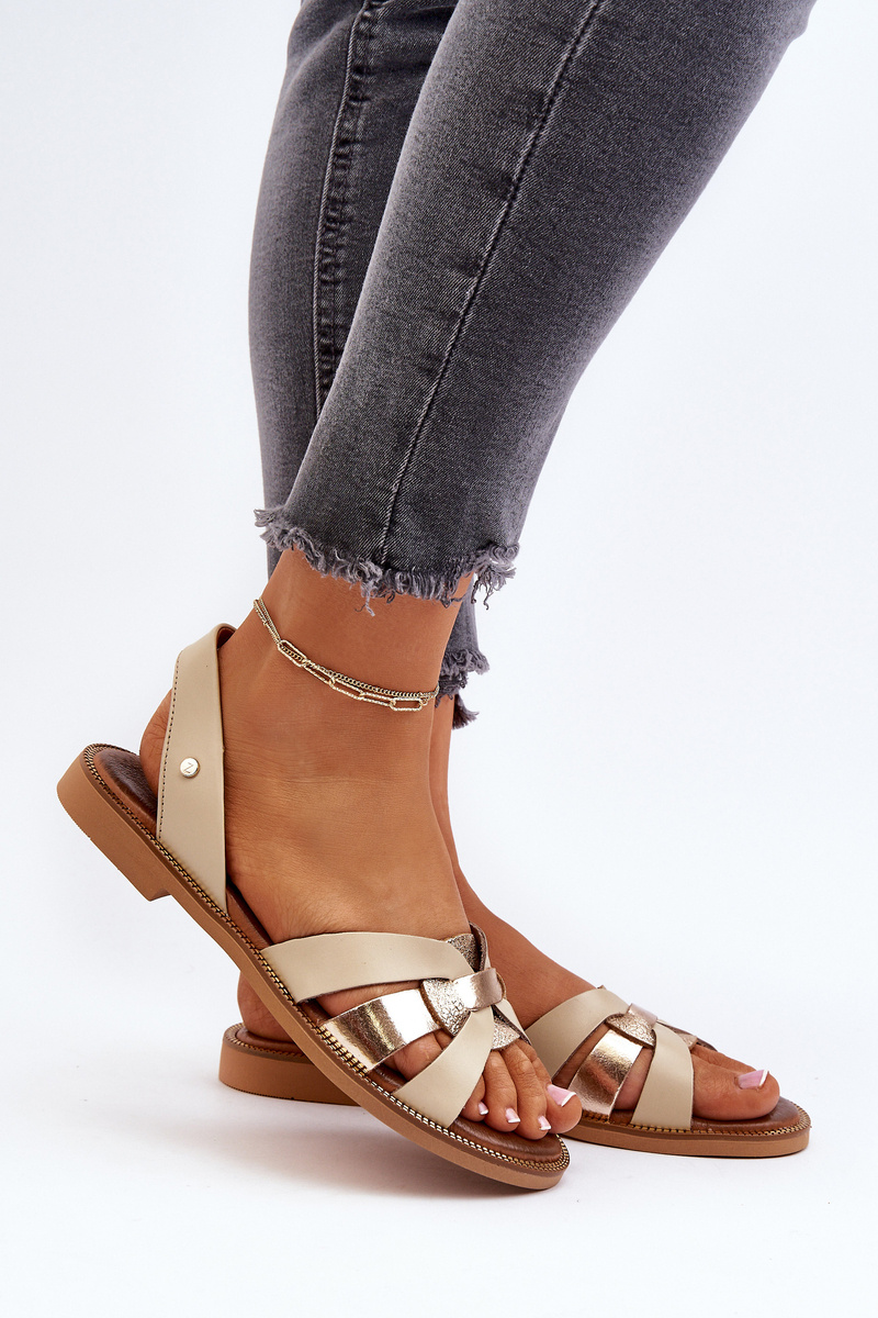Dámske kožené sandále v béžovej farbe Zazoo 40382