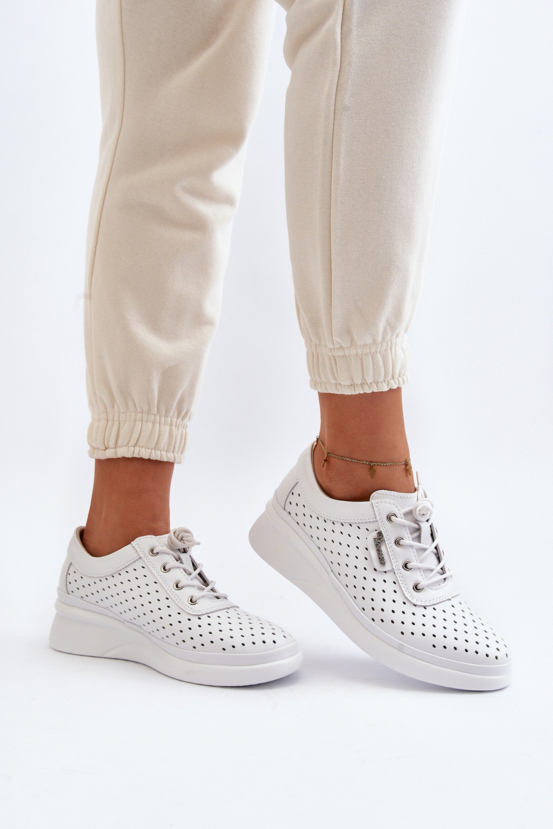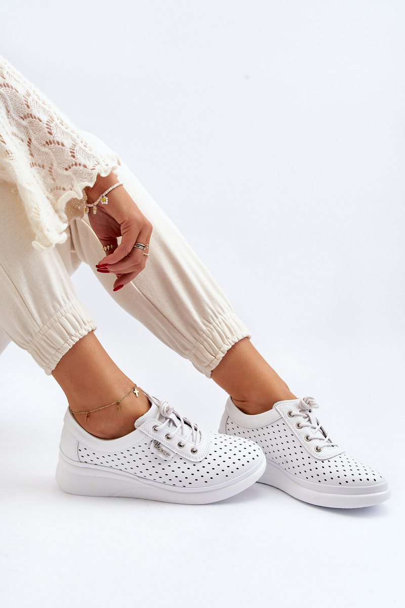 Krásne dámske tenisky sú vyrobené z prírodnej kože, ktorá zaručuje vysokú kvalitu a odolnosť. Ich perforovaná štruktúra po stranách zaisťuje vhodný prietok vzduchu, čo ich robí ideálnymi na teplé dni. Model je klasicky zaviazaný, čo umožňuje ideálne prispôsobenie k nohe. Zaoblený špičiak pridáva topánkam eleganciu. Mäkká, kožená stielka zaisťuje pohodlie počas nosenia. Tieto moderné tenisky sú skvelou voľbou pre každodenný štýl! Při výběru velikosti se řiďte tabulkou velikostí.