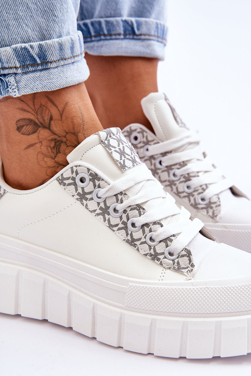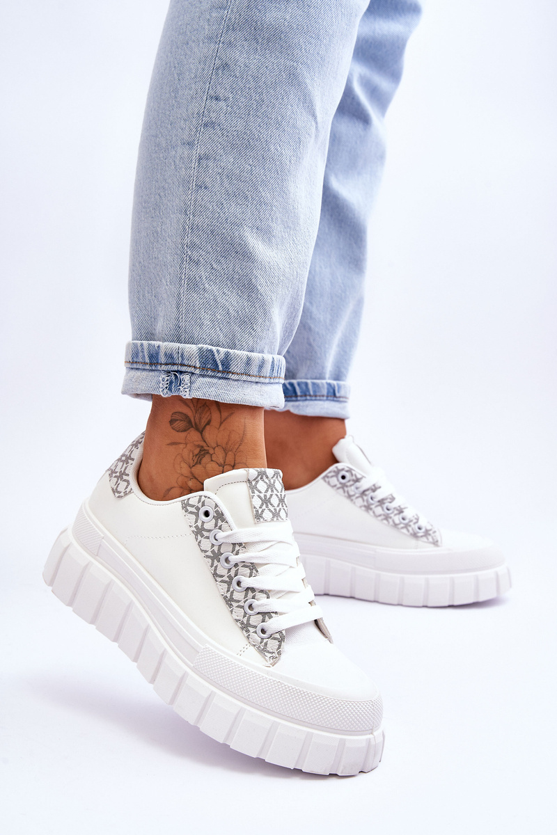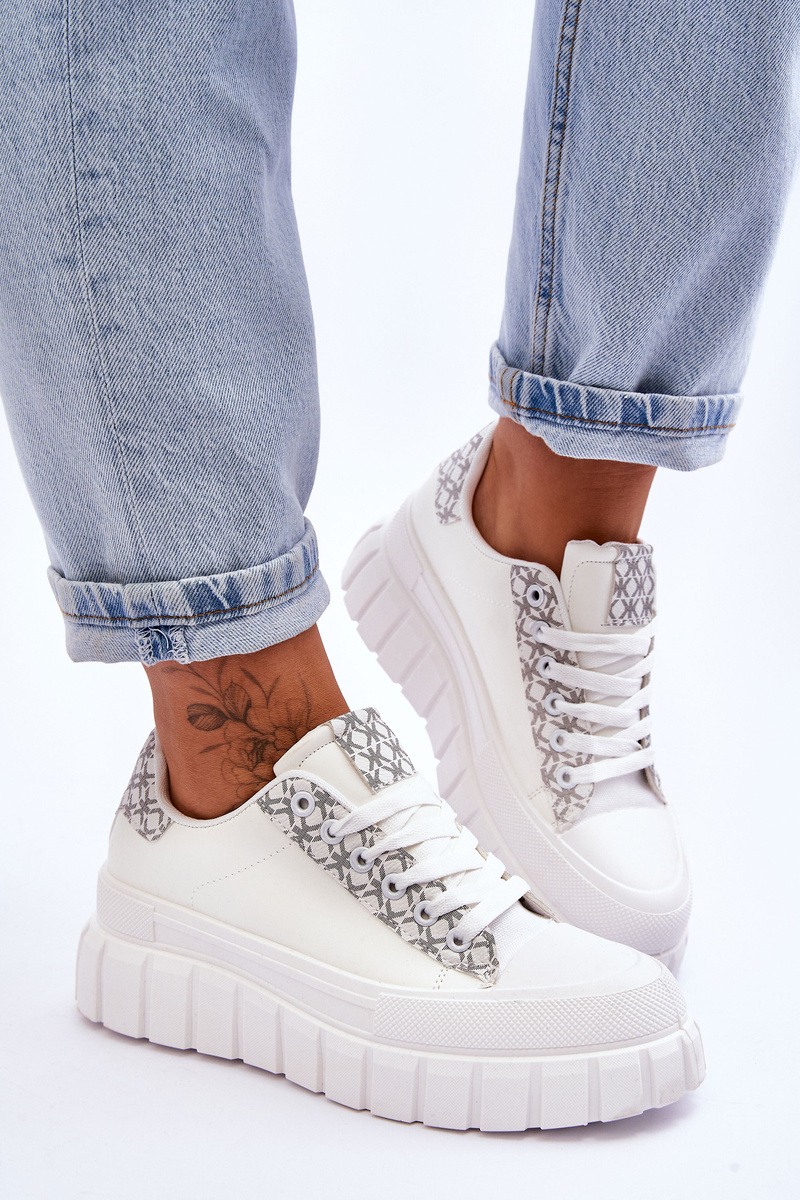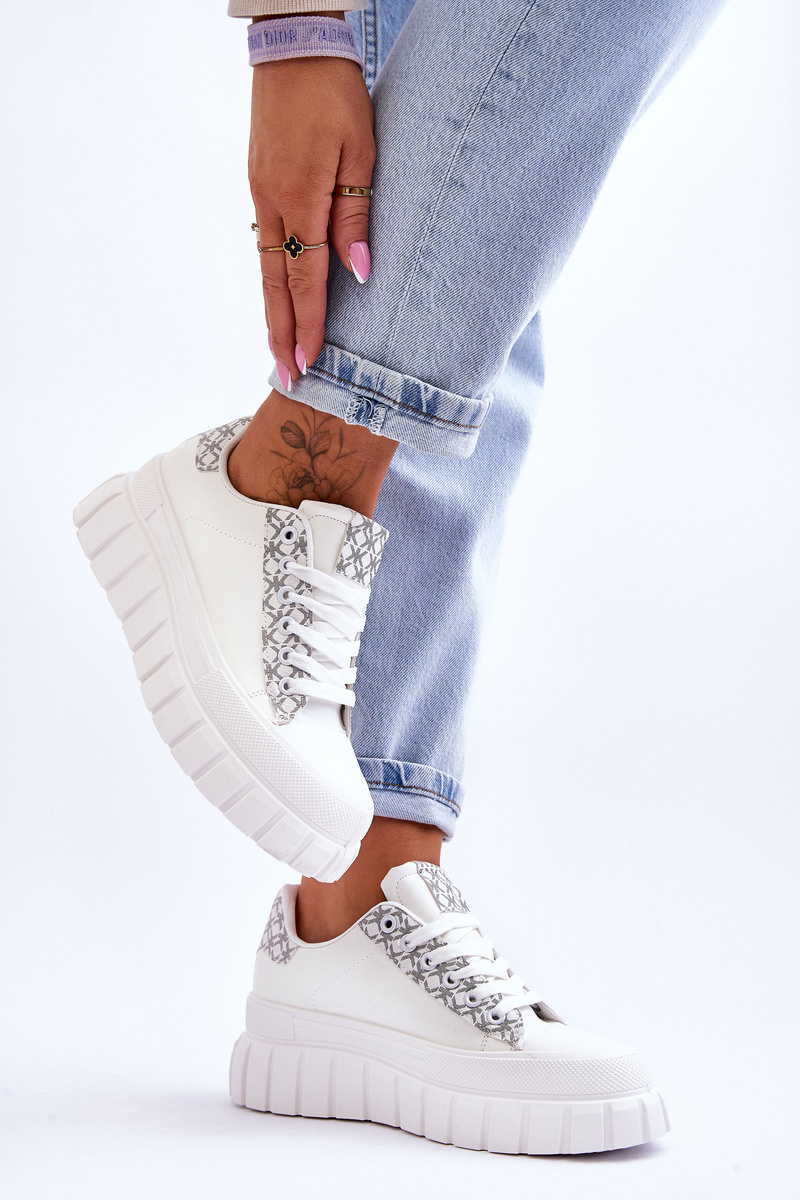 Pohodlné, športové topánky boli vyrobené z ekologickej kože s módnym vzorom. Čipkovaný model. Topánky boli zabudované na masívnej plošine, ktorá bola vyrobená z plastu. Mäkká vložka vyrobená z materiálu zabezpečí pohodlné použitie. Zaoblený nos. Tento model vyhovuje mnohým športovým štylizovaniu. Pri výbere veľkosti nasmerujte tabuľku veľkosti. /p>
