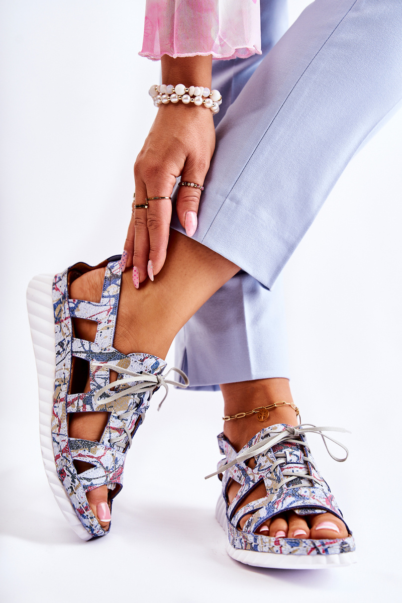 Dámske sandále boli vyrobené z prírodnej kože v módnom vzorke. Model pripevnený suchým zipsom na strane hornej časti a zviazaný. Mäkká vložka je vyrobená z prírodnej kože a je mimoriadne pohodlná. Sandále sú zabudované na jemnú plošinu. Plastová podrážka. Nos objavený, zaoblený. Model bude vynikajúci v horúcich dňoch! Pri výbere veľkosti postupujte podľa tabuľky veľkosti.