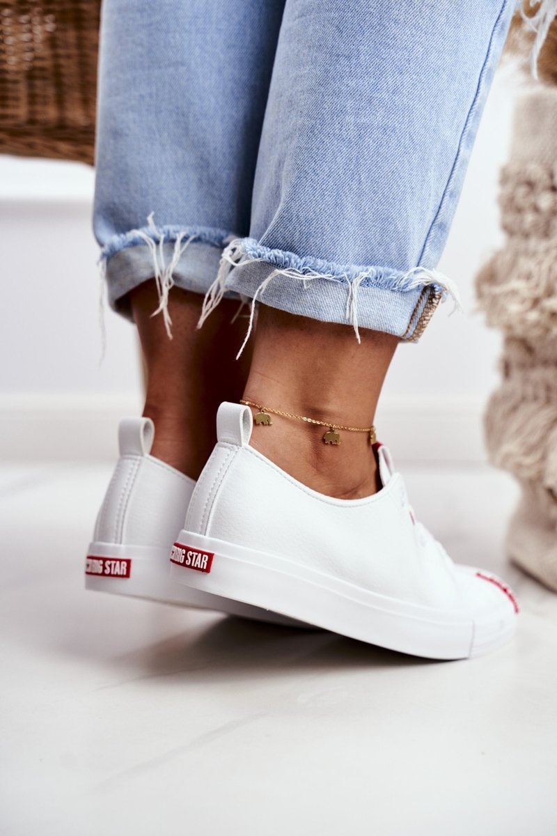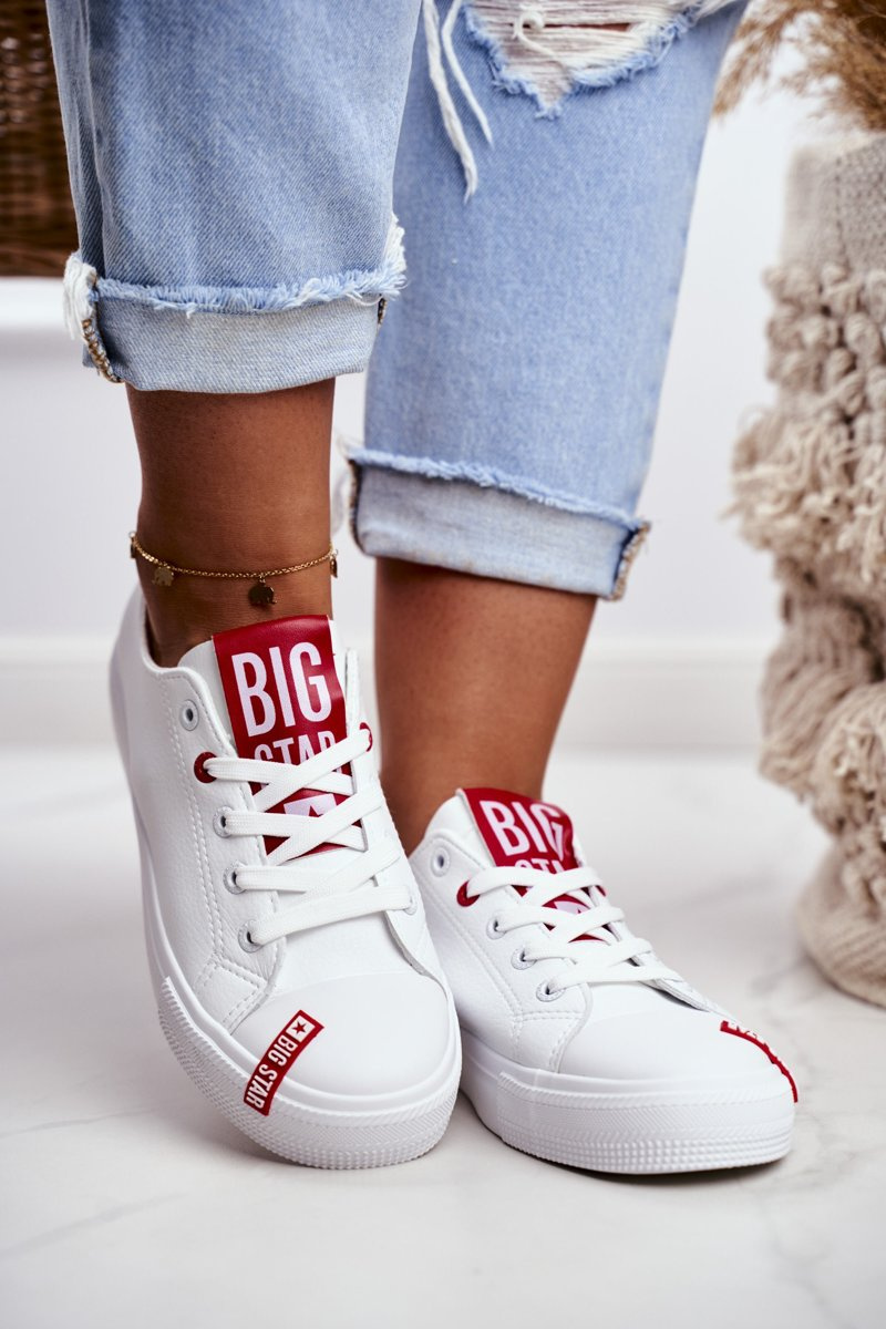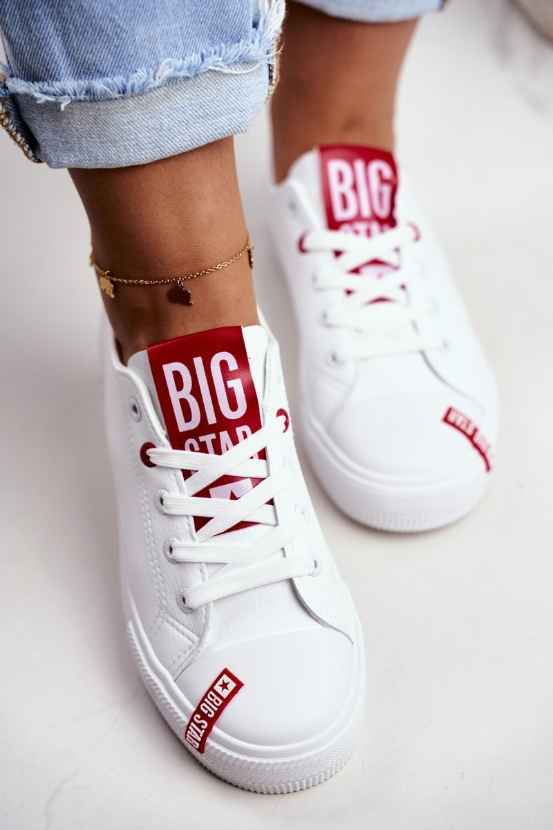Dámske tenisky poľskej značky Big Star. Klasická forma sa zhoduje s mnohými štýlmi. Topánky sa dobre prispôsobujú tvaru chodidla, majú mäkkú, materiálovú vložku a podrážku nekrip. Sú vyrobené z vysoko kvalitnej ekologickej kože. Nezabudnite skontrolovať našu kolekciu veľkých hviezd. Pri výbere veľkosti navrhnite tabuľku veľkosti.