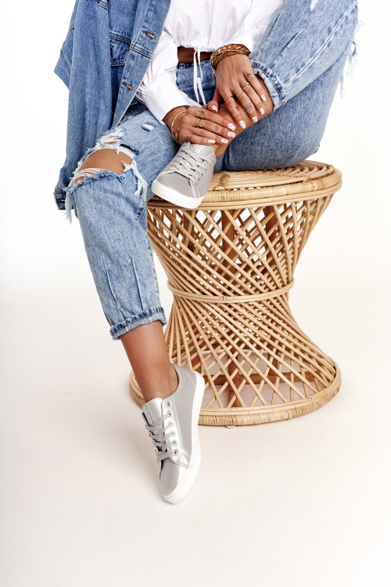 Towar wprowadzony przed 13.12.2024Tak Dámske kožené tenisky Big Star HH274143 Striebro
