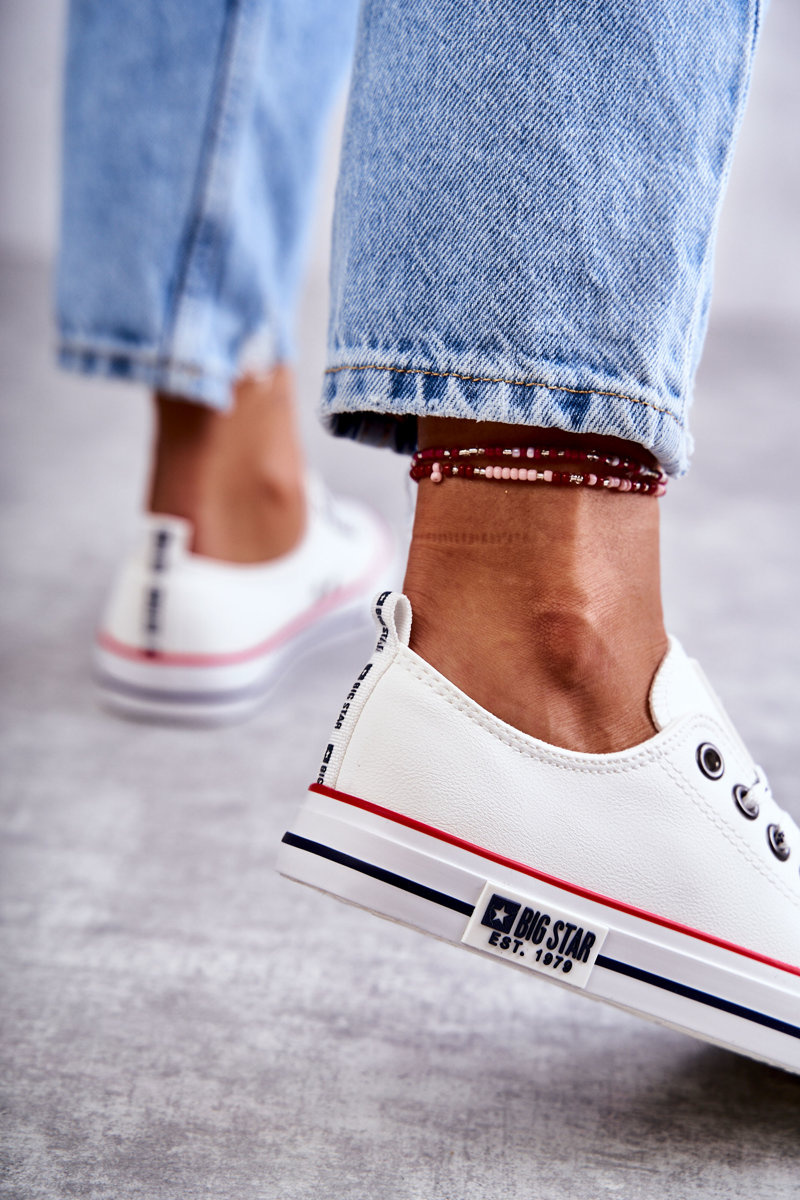 Nadčasové ženské tenisky Big Star boli vyrobené z ekologickej kože. Majú gumu, vystužený nos. Model sa vyznačuje zaznamenanými šnúrkami. Podrážka s platformou je vyrobená z gumového plastu, vďaka čomu tento model nie je k dispozícii. Vložka materiálu. Klasické tenisky určite budú vyzerať skvele v mnohých štýloch. Pri výbere veľkosti navrhnite tabuľku veľkosti. /p>
