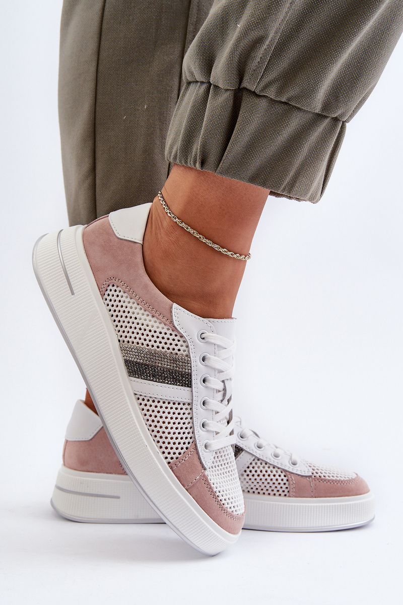 Dámske kožené tenisky D&A LR110 bielo-ružové