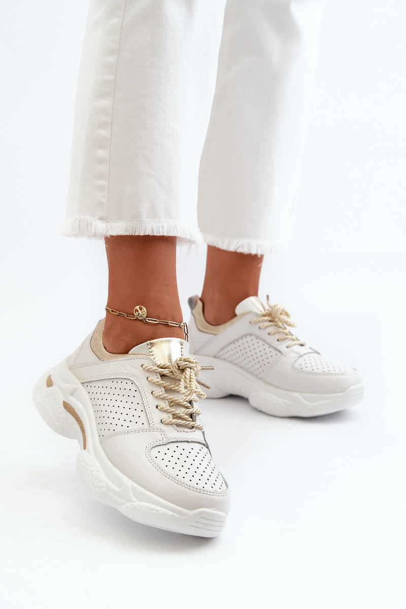 Dámske Kožené Tenisky Na Hrubej Podešvi Bielo-Zlaté Dzumati