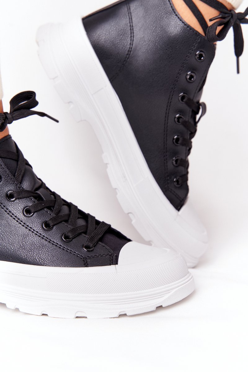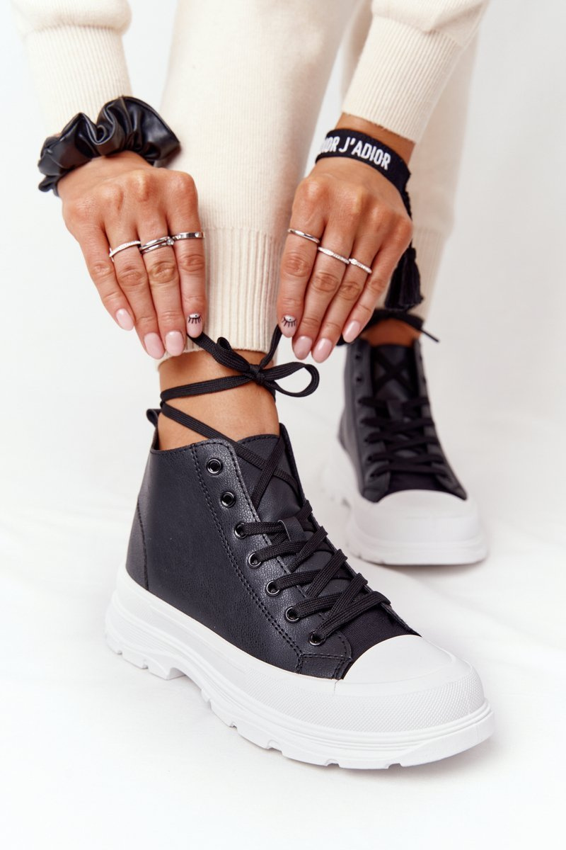 Dámske kožené tenisky na veľkej výhradnej čiernej trissy