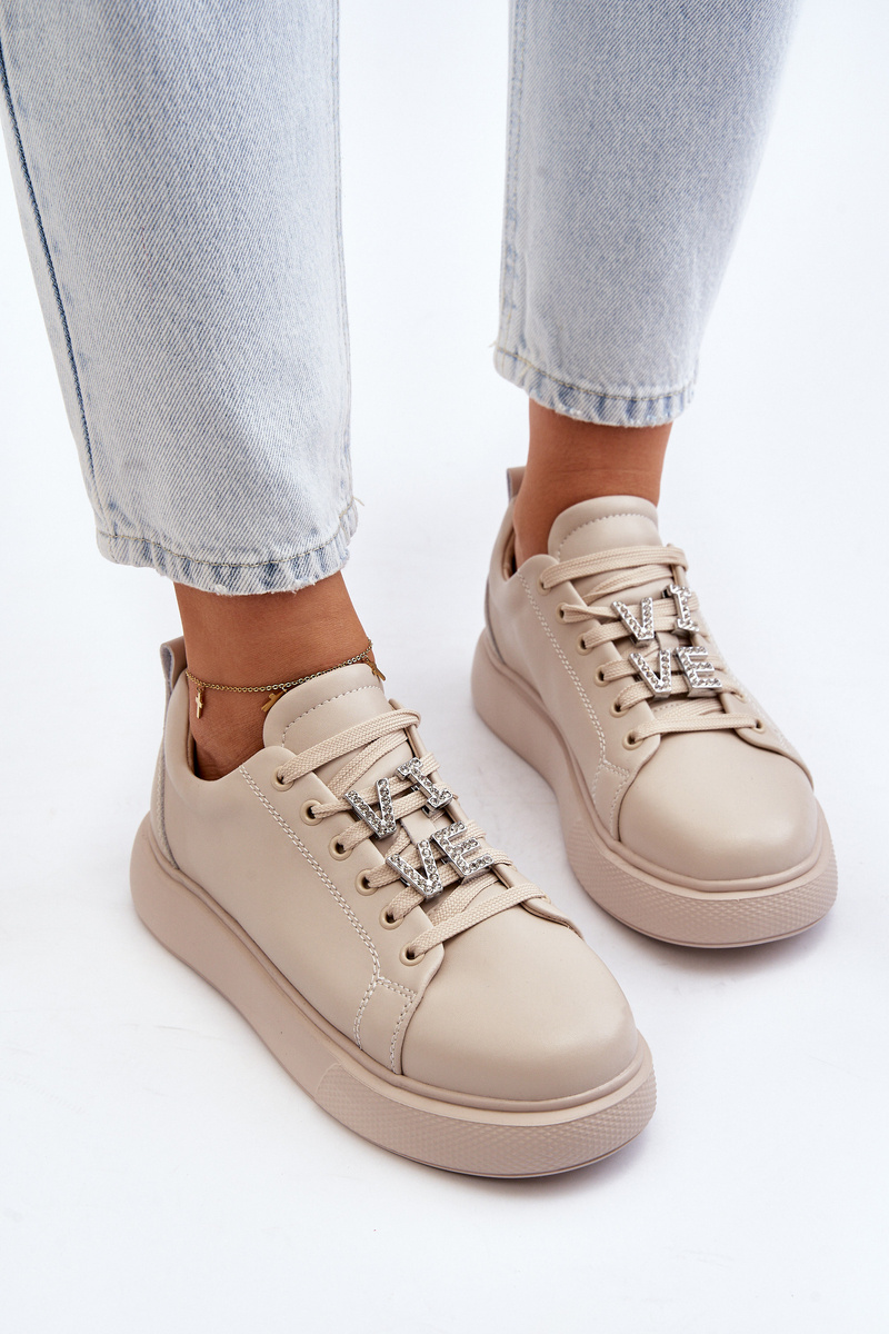 Dámske kožené tenisky s ozdobami béžové Dysuria