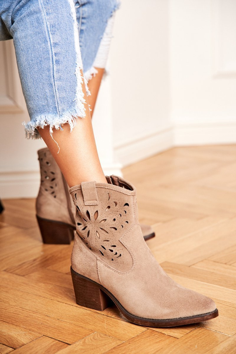 Boots nie sú len topánky pre chladné dni. Sú tiež skvelé pri vytváraní stylizovania jari. Čižmy majú zips na boku hornej časti uľahčujúceho nasadenie. Úplne vyrobené zo semišovej kože, ktorá nám zaručuje pohodlie a vysokú kvalitu. Ideálne pre vzdušné šaty a džínsové nohavice. Pri výbere veľkosti navrhnite tabuľku veľkosti.