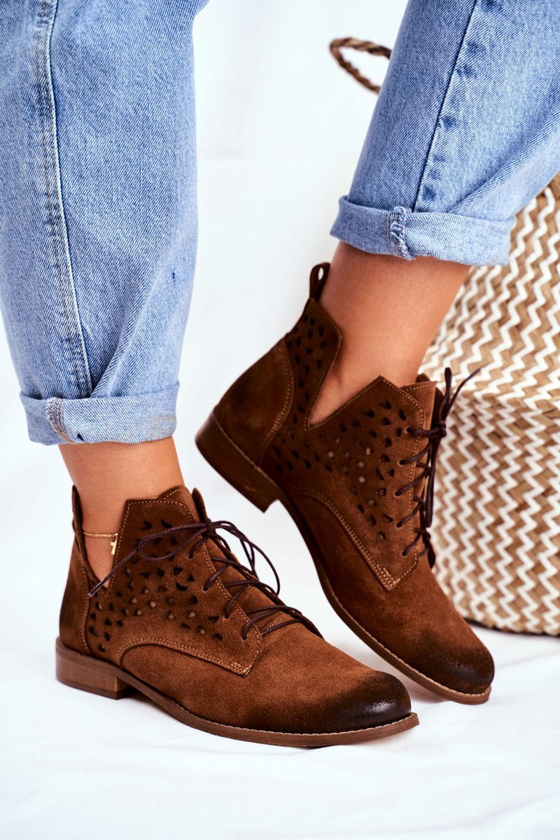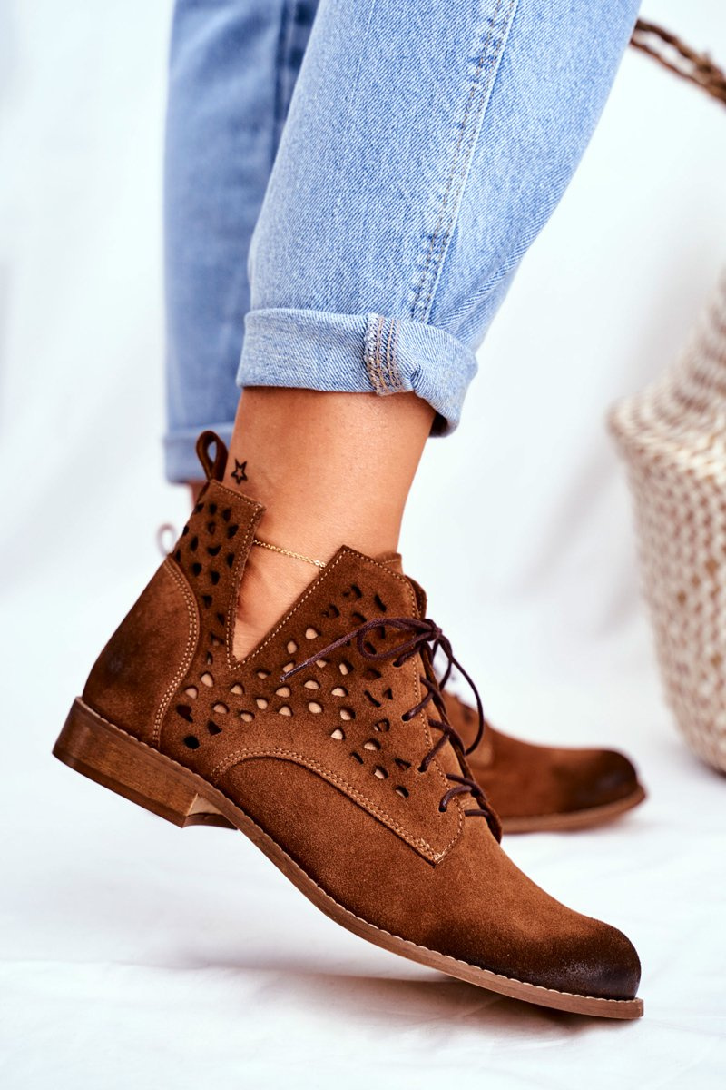 Boots nie sú len topánky pre chladné dni. Sú tiež skvelé pri vytváraní stylizovania jari. Poľský produkt vyrobený výlučne zo semišovej kože. Jemná plochá päta zdvihne vašu postavu a zdôrazní štylizovanie. Štýl otvoreného diela nikdy nevyjde z módy. Ideálne pre vzdušné šaty a džínsové nohavice. Pri výbere veľkosti navrhnite tabuľku veľkosti.