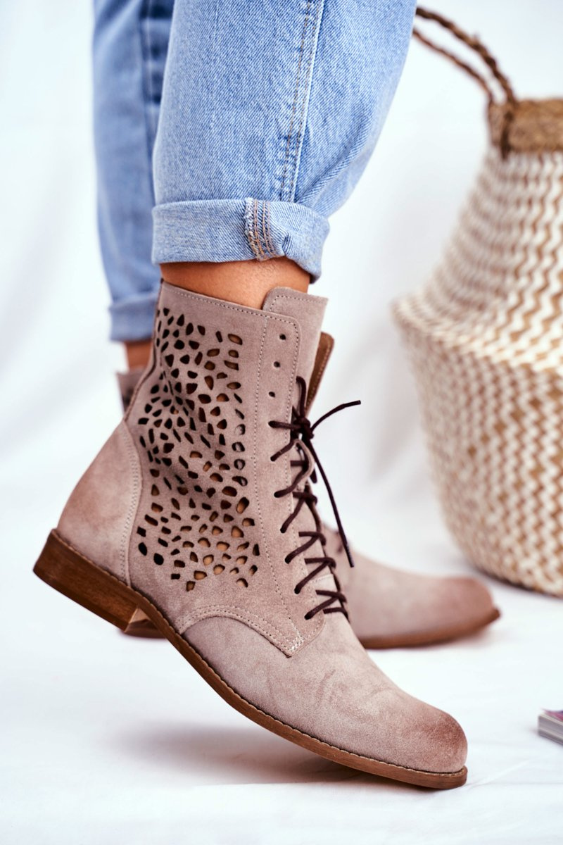 Boots nie sú len topánky pre chladné dni. Sú tiež skvelé pri vytváraní stylizovania jari. Poľský produkt vyrobený výlučne zo semišovej kože. Jemná plochá päta zdvihne vašu postavu a zdôrazní štylizovanie. Štýl otvoreného diela nikdy nevyjde z módy. Ideálne pre vzdušné šaty a džínsové nohavice. Pri výbere veľkosti navrhnite tabuľku veľkosti.