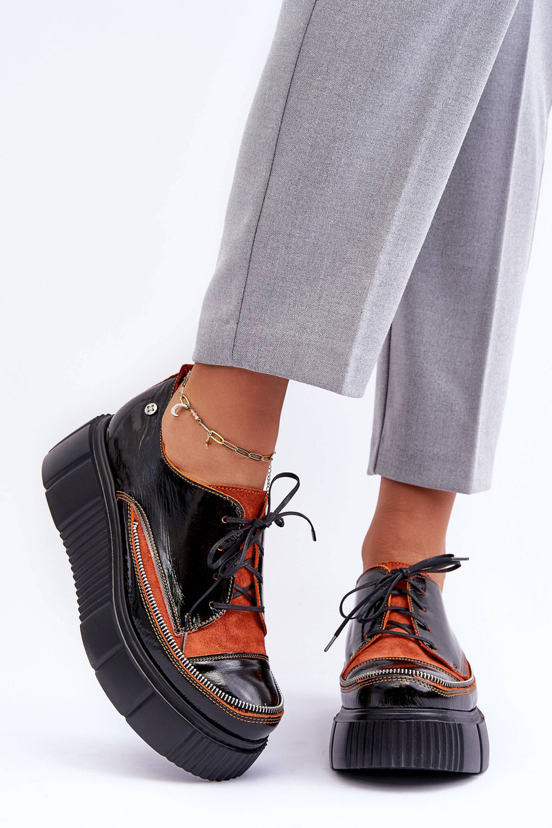 Maciejka Brand neprestane potešiť a ponúka nám tieto nádherné topánky. Všetky vyrobené z prírodnej, lakovanej kože, ktorá v kombinácii s módnym povrchom im dáva úžasné kúzlo. Ventilovaná kožená vložka je zárukou pohodlia. Tento model je vložený na masívnej platforme. Pri výbere veľkosti navrhnite tabuľku veľkosti.