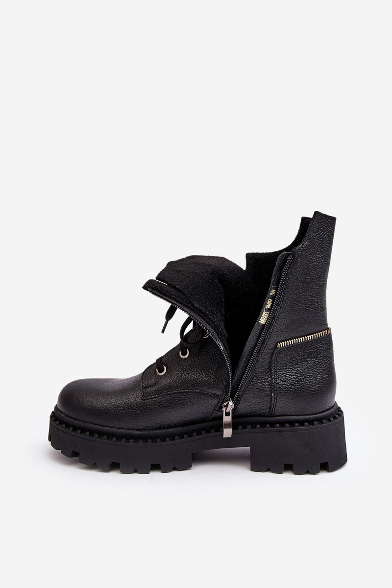 Dámske topánky s členkovým zvrškom. Vyrobené z prírodnej kože. Ploché a platforma. Pripevnený zipsom. Zaoblené prsty na nohách. Stuhnutá päta. Agent izoloval prikrývku topánky. Pri výbere veľkosti navrhnite tabuľku veľkosti.