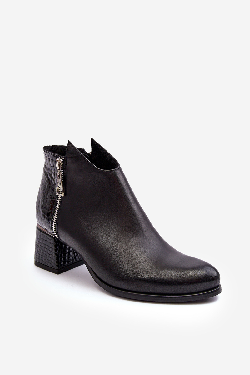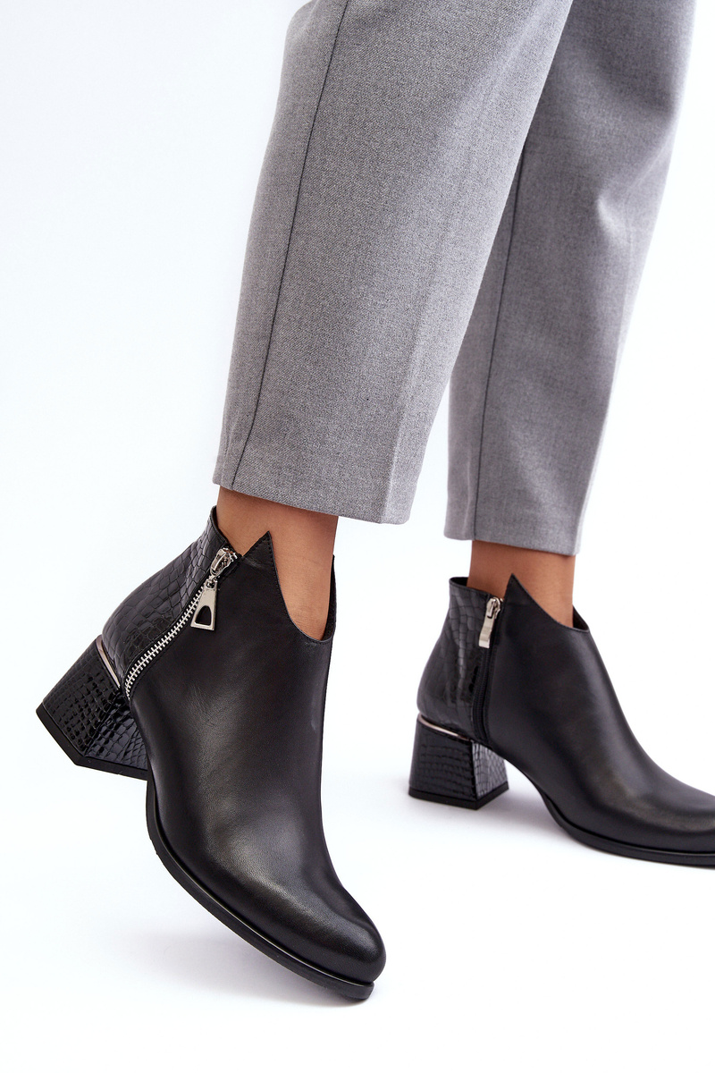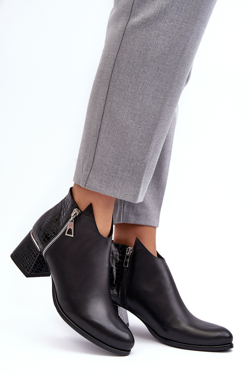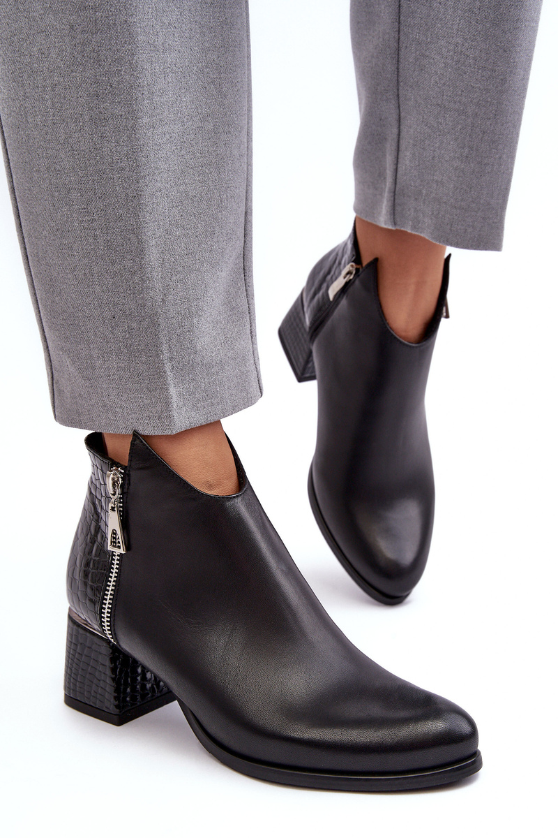 Dámske kožené topánky na čiernom stĺpiku s nízkym Zazoo 4111