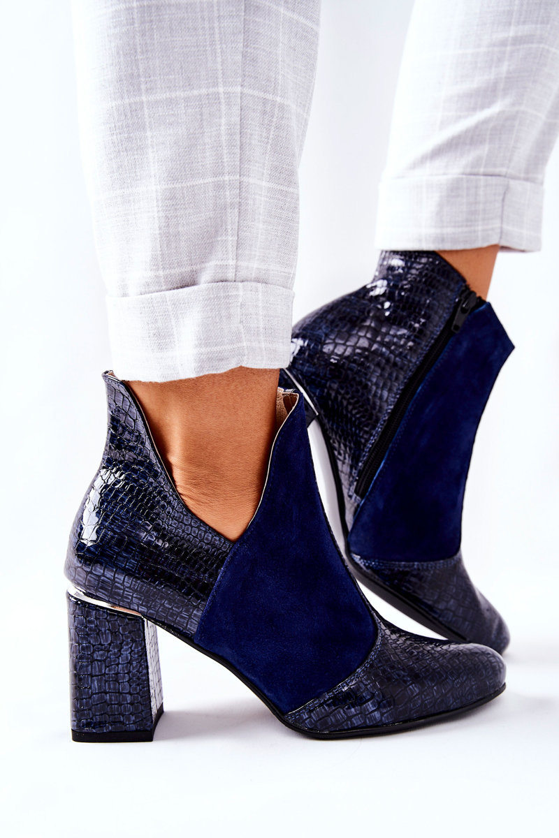 Dámske kožené topánky na pilierovom námorníckom modrej farbe a želania