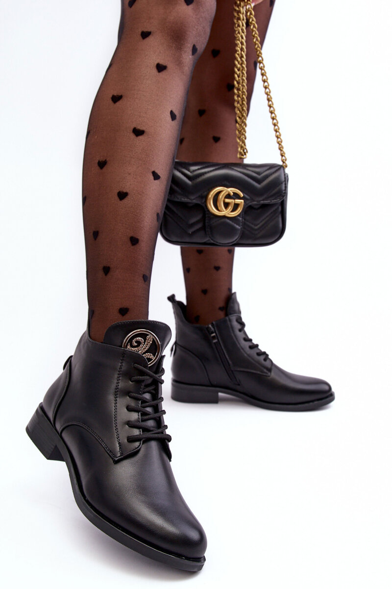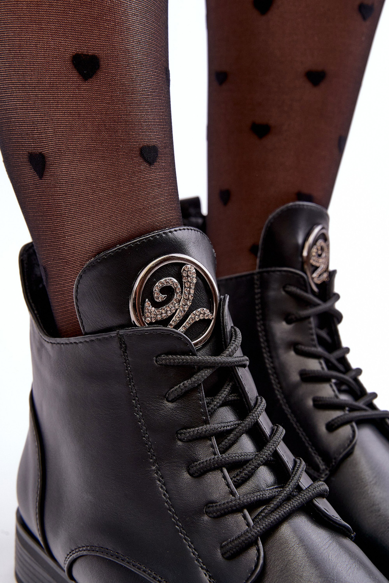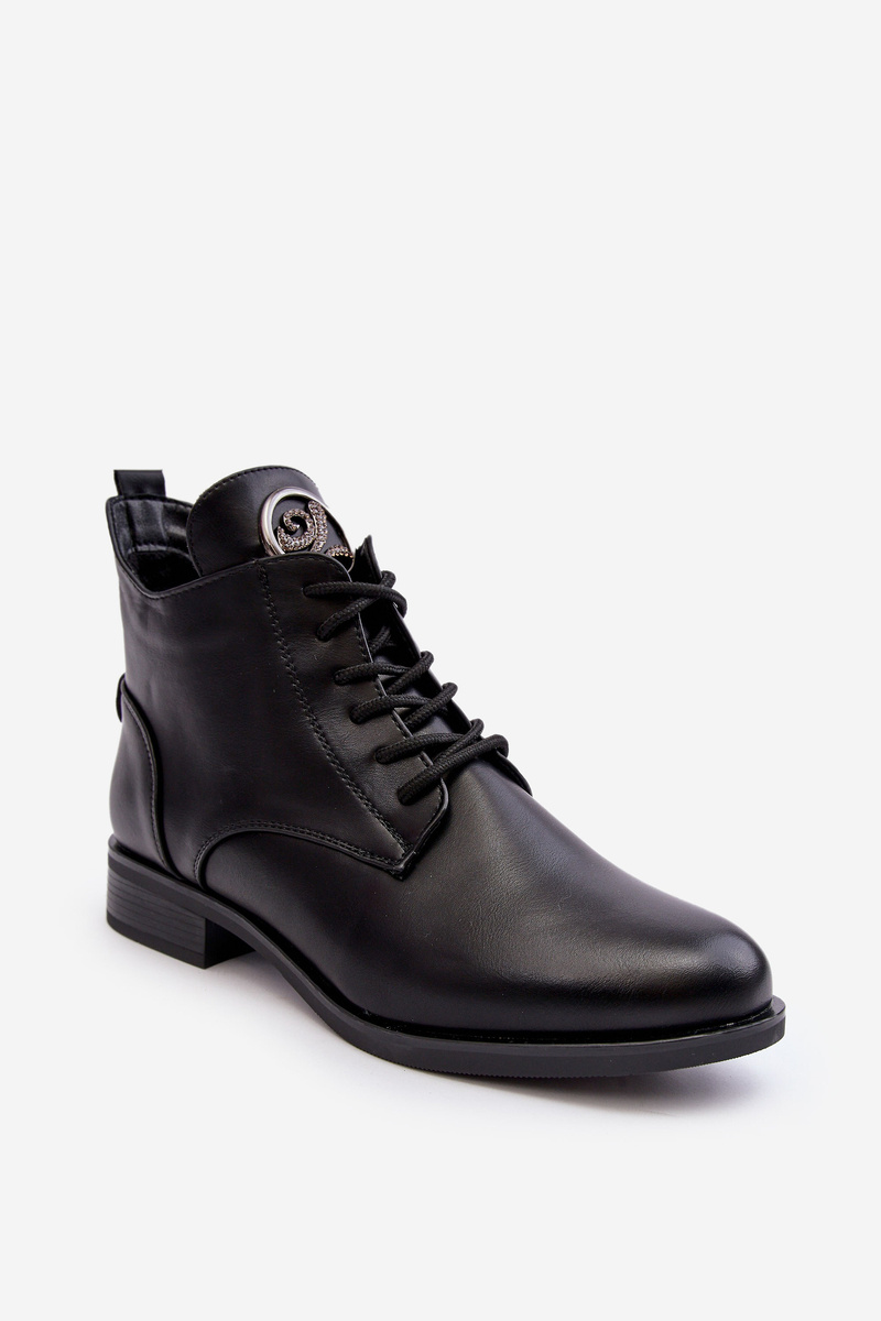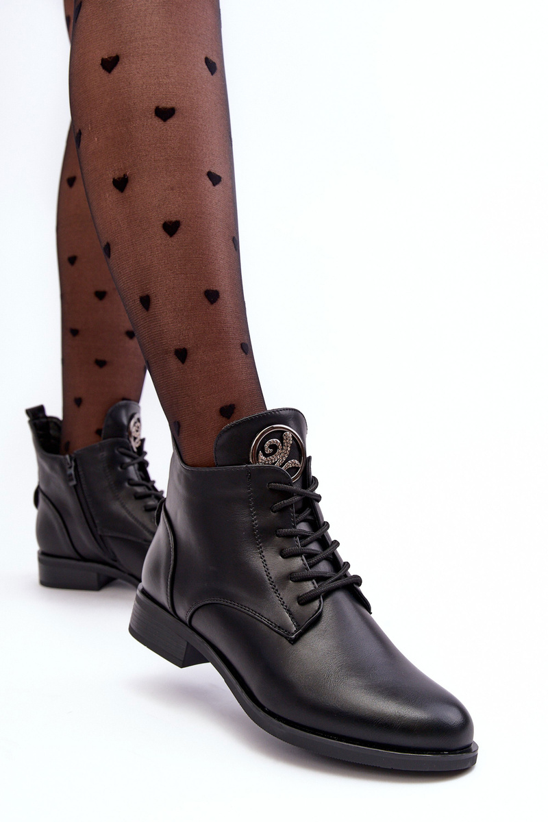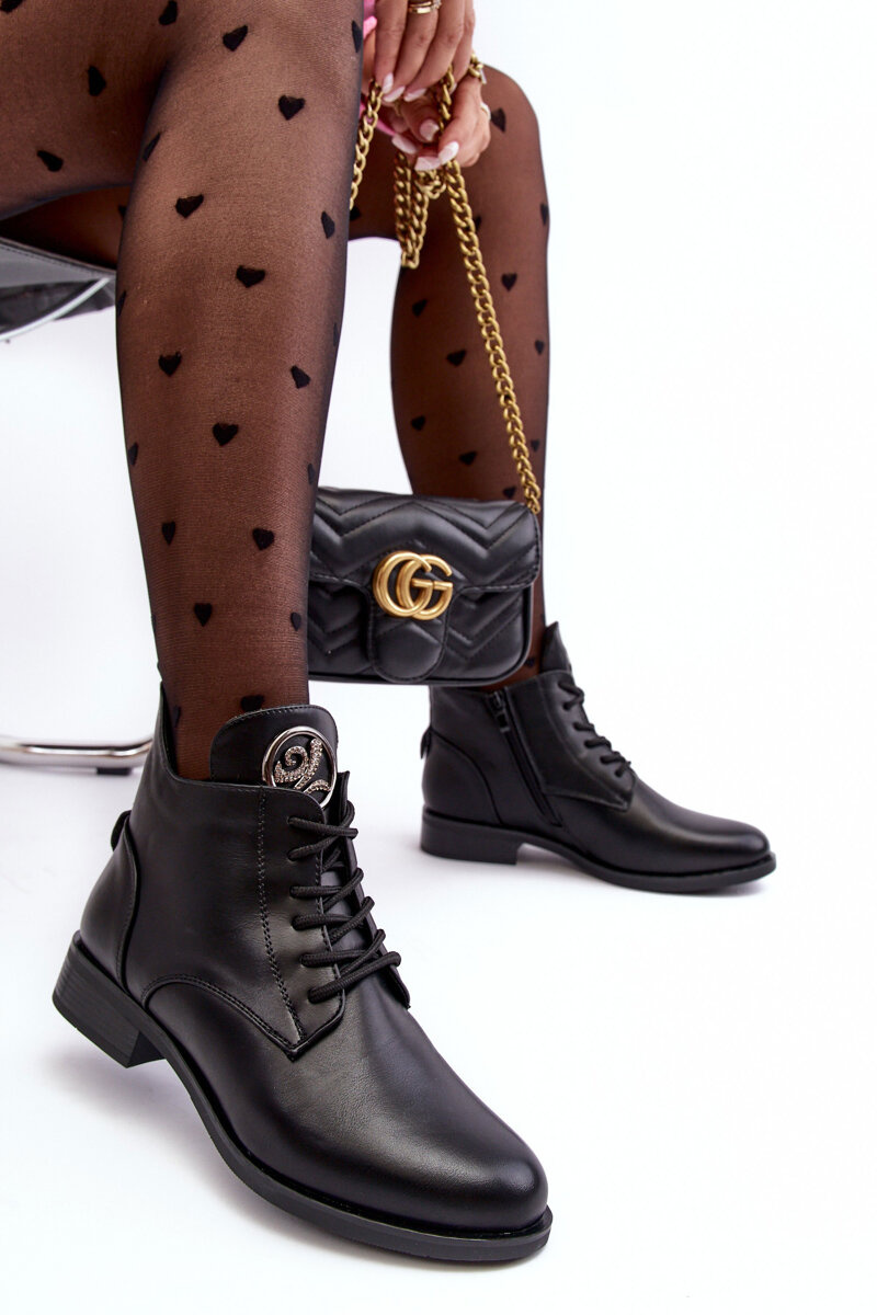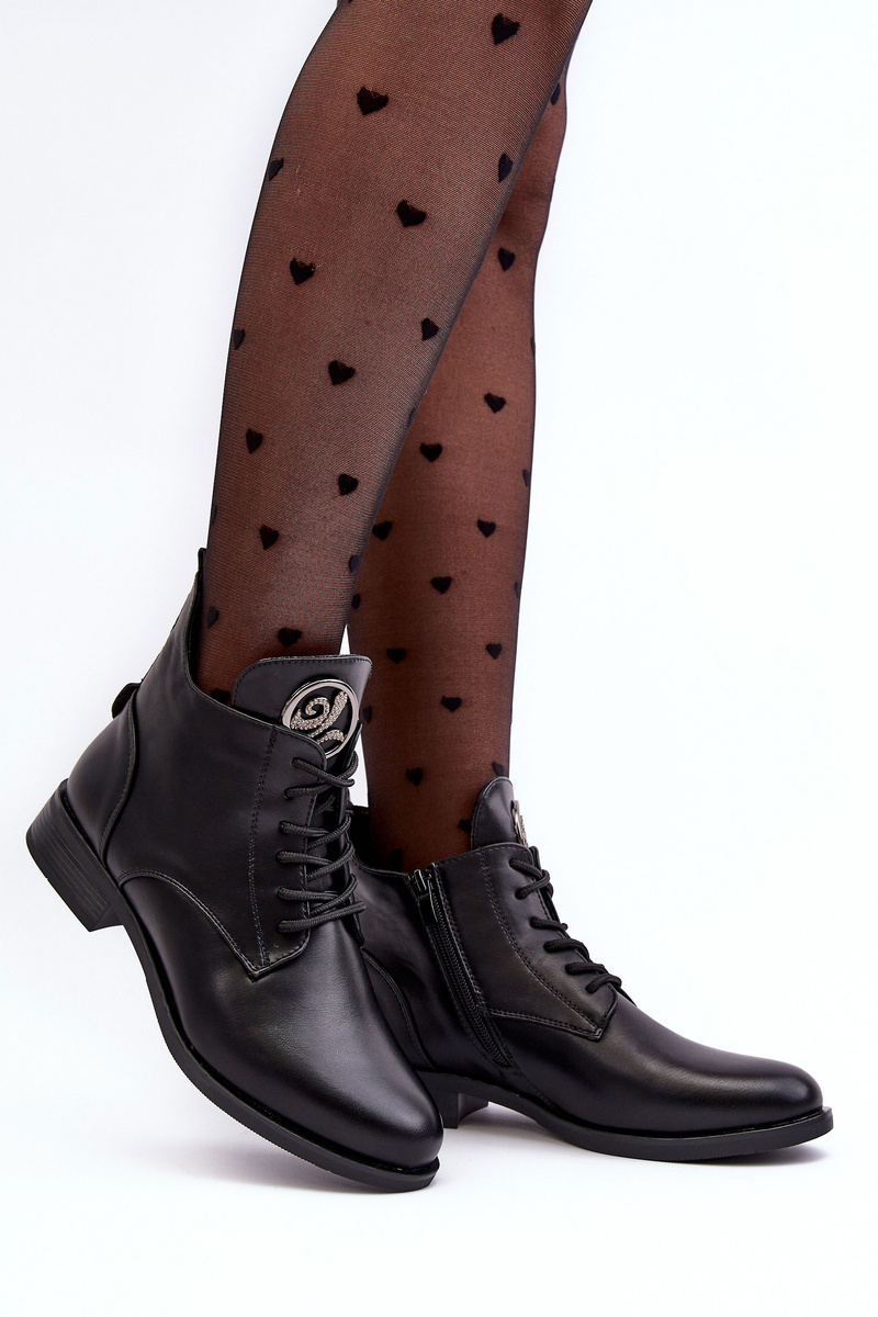Dámske kožené topánky s dekoráciou čierny Attiame