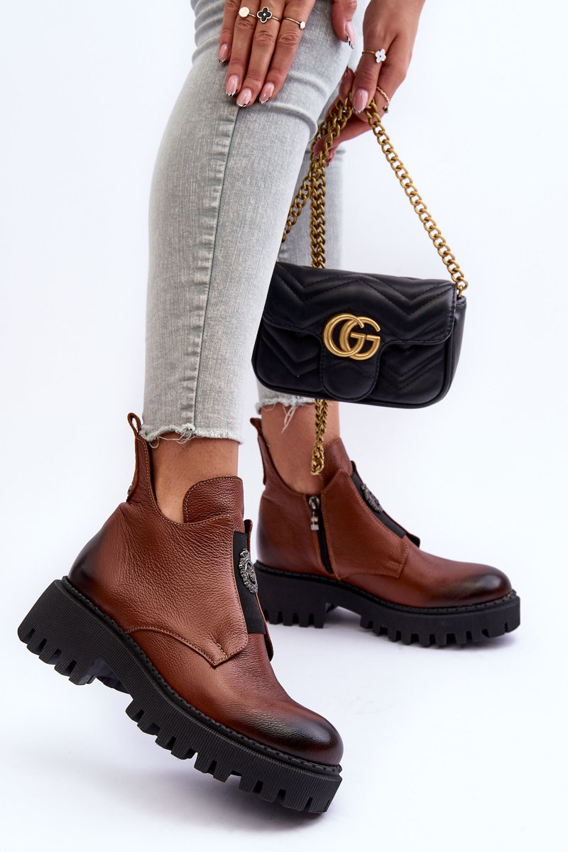 Dámske kožené topánky s dekoráciou hnedý lemar Lusanna