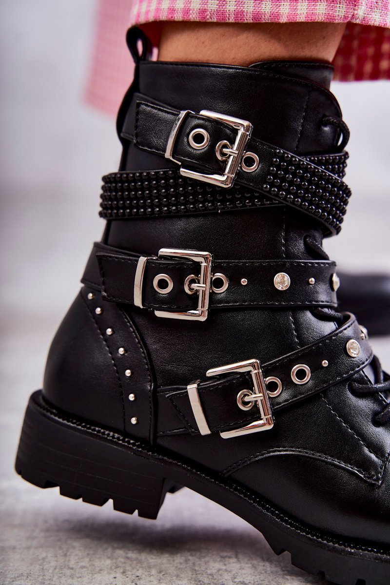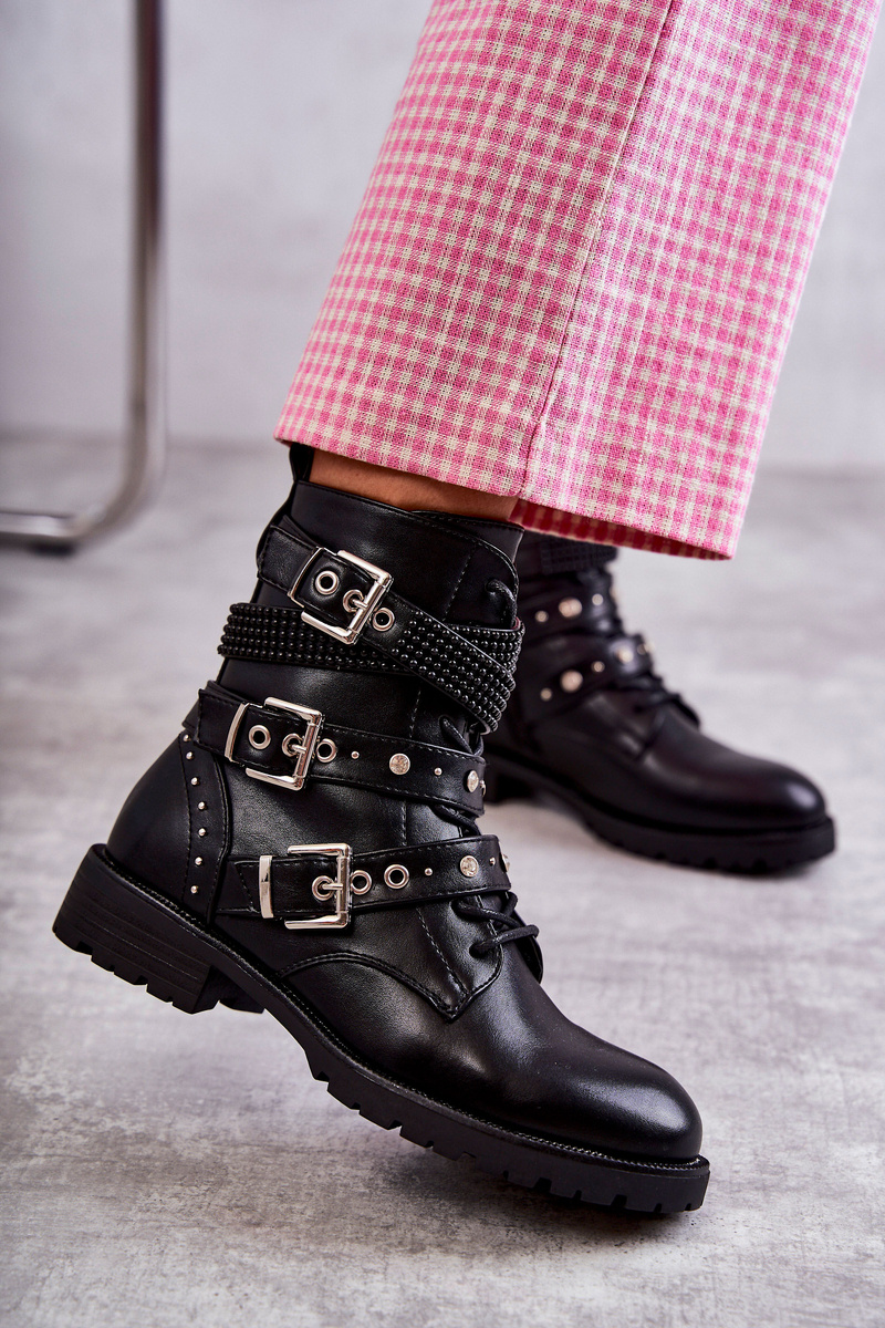Módne ženské topánky boli vyrobené z vrcholu ekologickej kože. Na hornej časti sú pruhy s dekoráciami vo forme cvočkov. Okrem toho sú nastaviteľné a majú pracky. Tento model je pripevnený zipsom a priviazaný. Interiér topánok je pokrytý mäkkou obuvou prikrývkou. Jemná plošina a plochá päta zabezpečí stabilitu v každom kroku. Pri výbere veľkosti navrhnite tabuľku veľkosti. p>