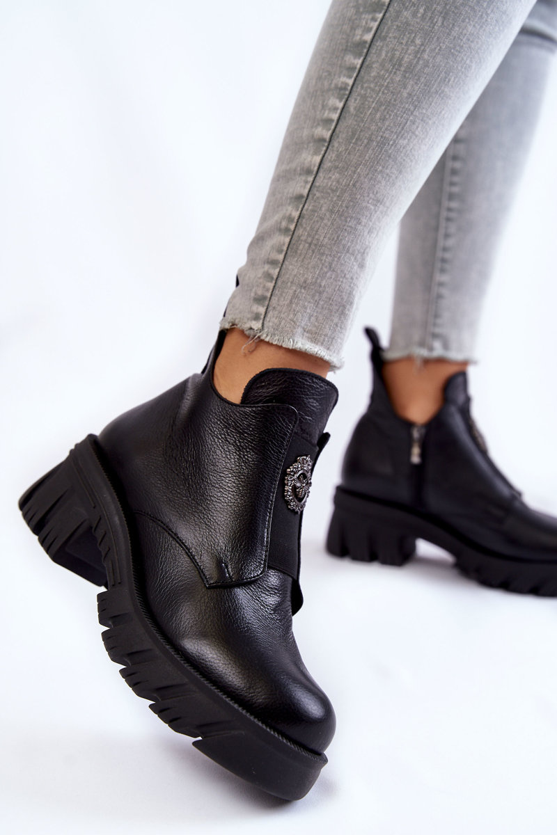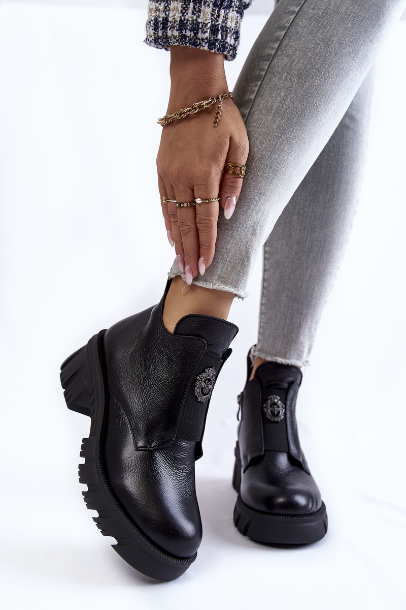 Dámske kožené topánky s ornamentom čiernou maley