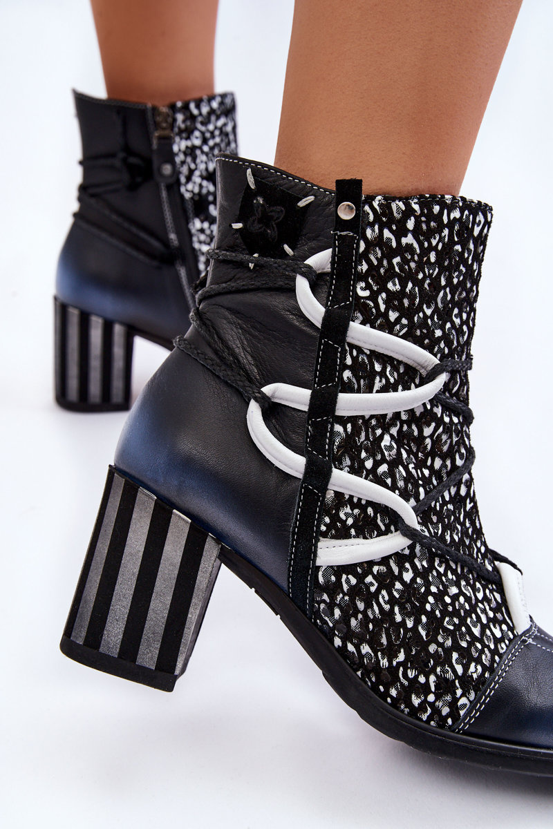 Dámske kožené vysoké podpätky Maciejka 05605-01 Čierna a biela