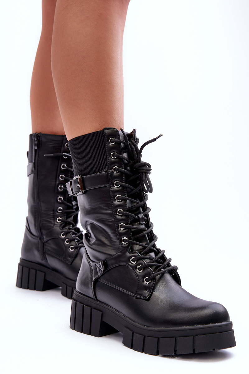 Topánky vyrobené z ekologickej kože. Stretol sa na masívnej päte a platforme. Pripevnené posúvačom na boku a dodatočne priviazané. Tento model má flexibilnú vložku a remienok s prackou. Pozrite sa na celú našu kolekciu vysokých topánok! Pri výbere veľkosti navrhnite tabuľku veľkosti.