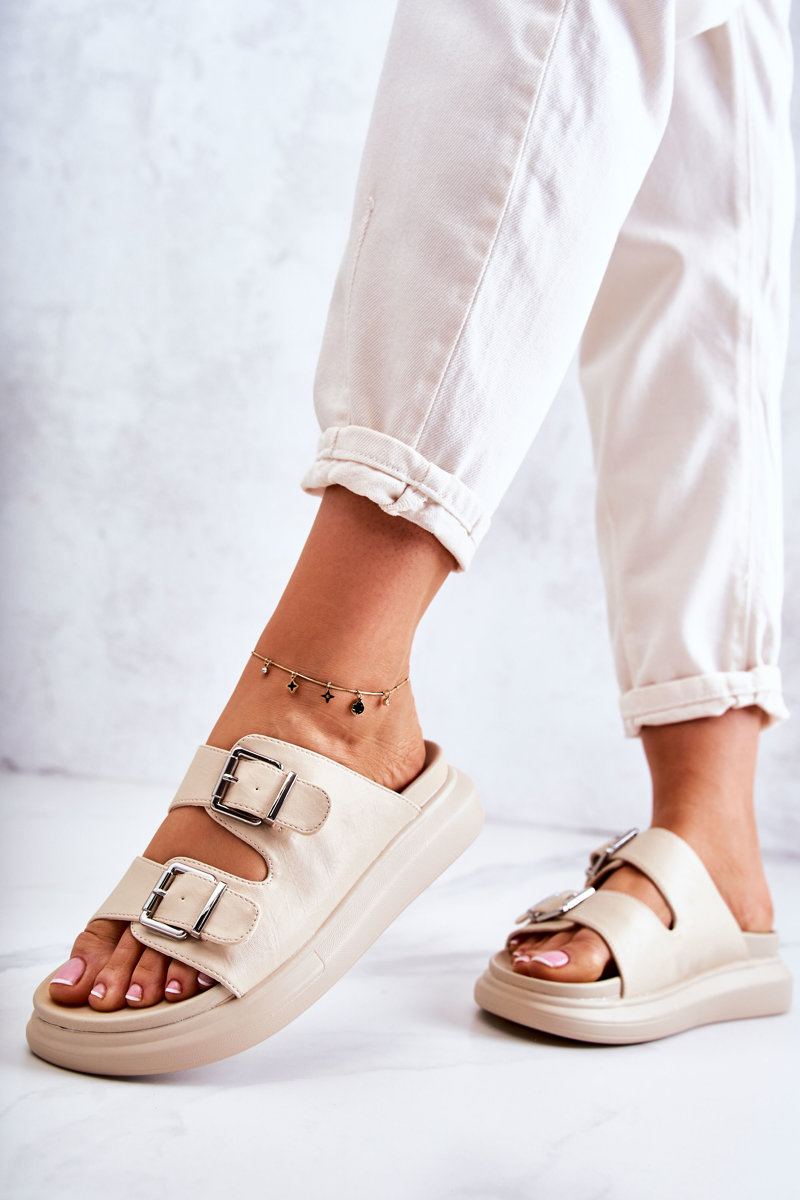 Dámske kožené žabky s prackou la.fi béžová nariss