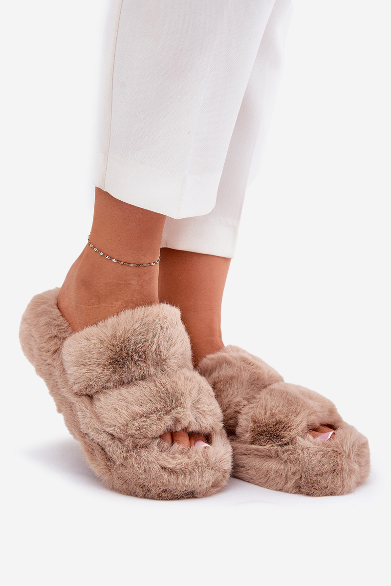 Dámske kožušinové papuče na platforme khaki Talfedi