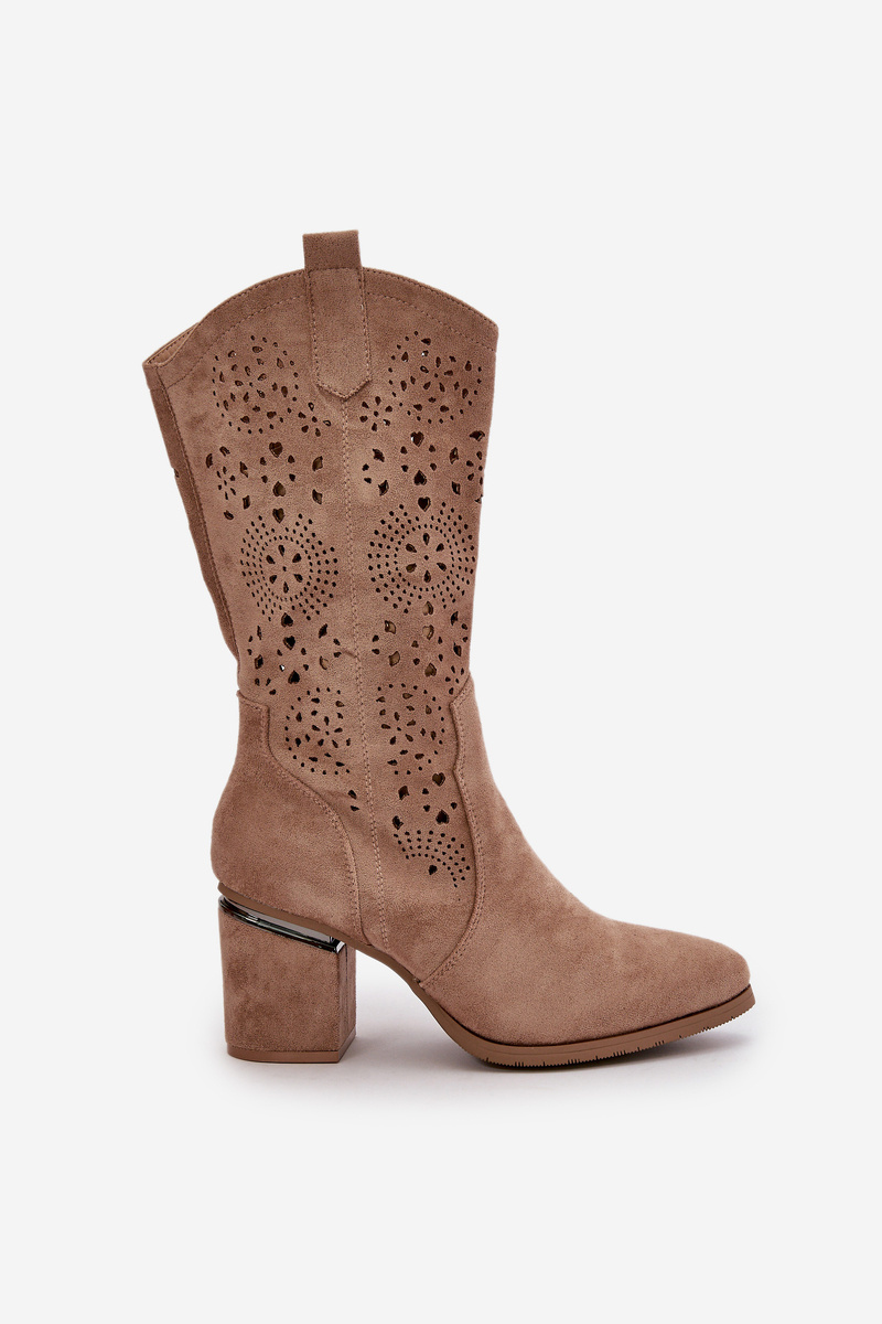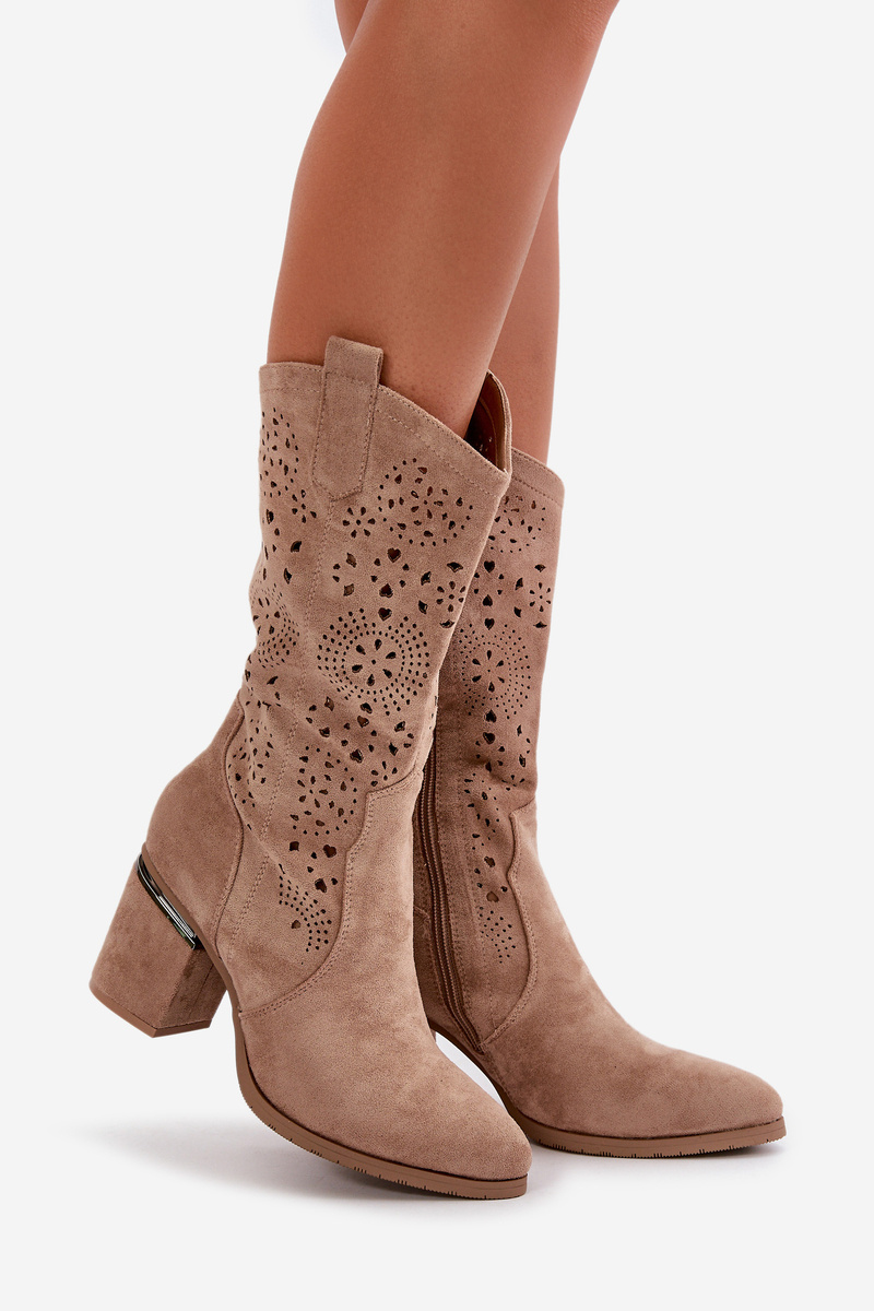 Dámske Krajkové Kozačky Na Blokovom Opätku Eko Semiš Béžové S.Barski HY42-028