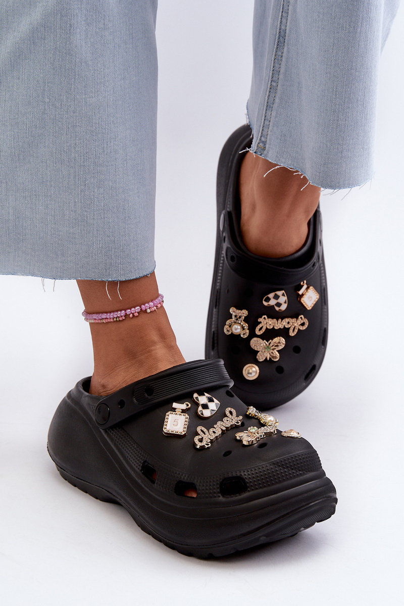 Dámske ľahké peny na hrubom podrážky s príveskami Čierne Effiora