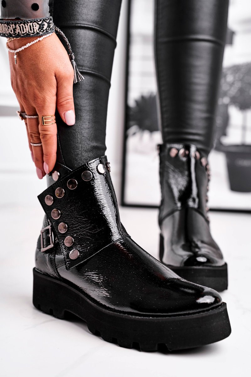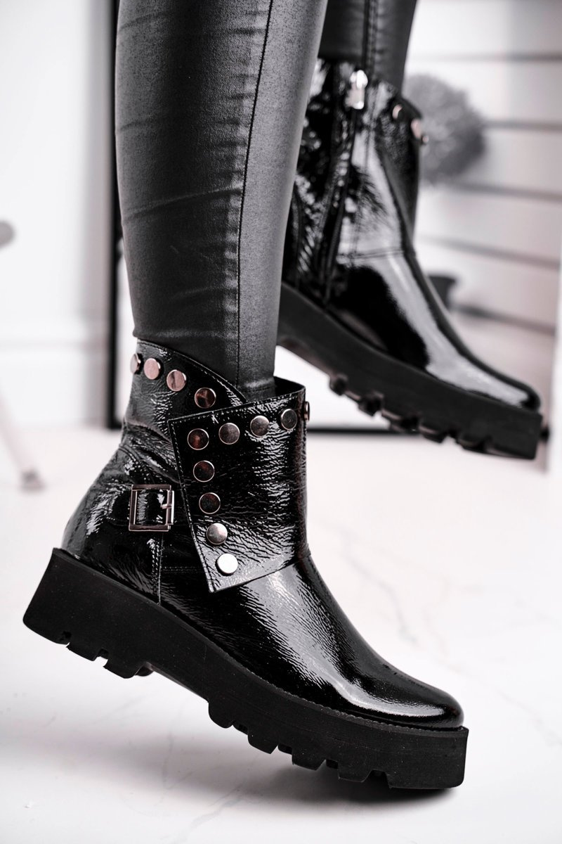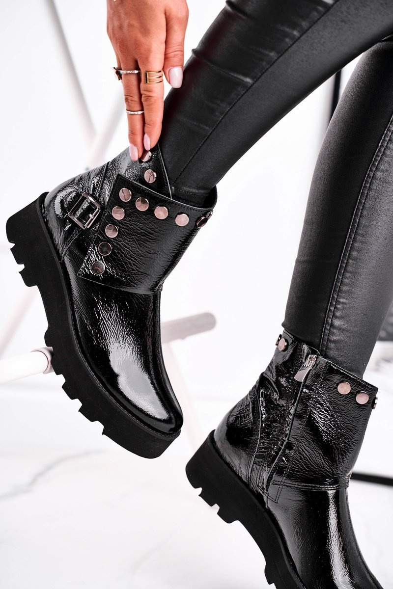 Dámske lakované kožené topánky čierne vynikajúce 1199