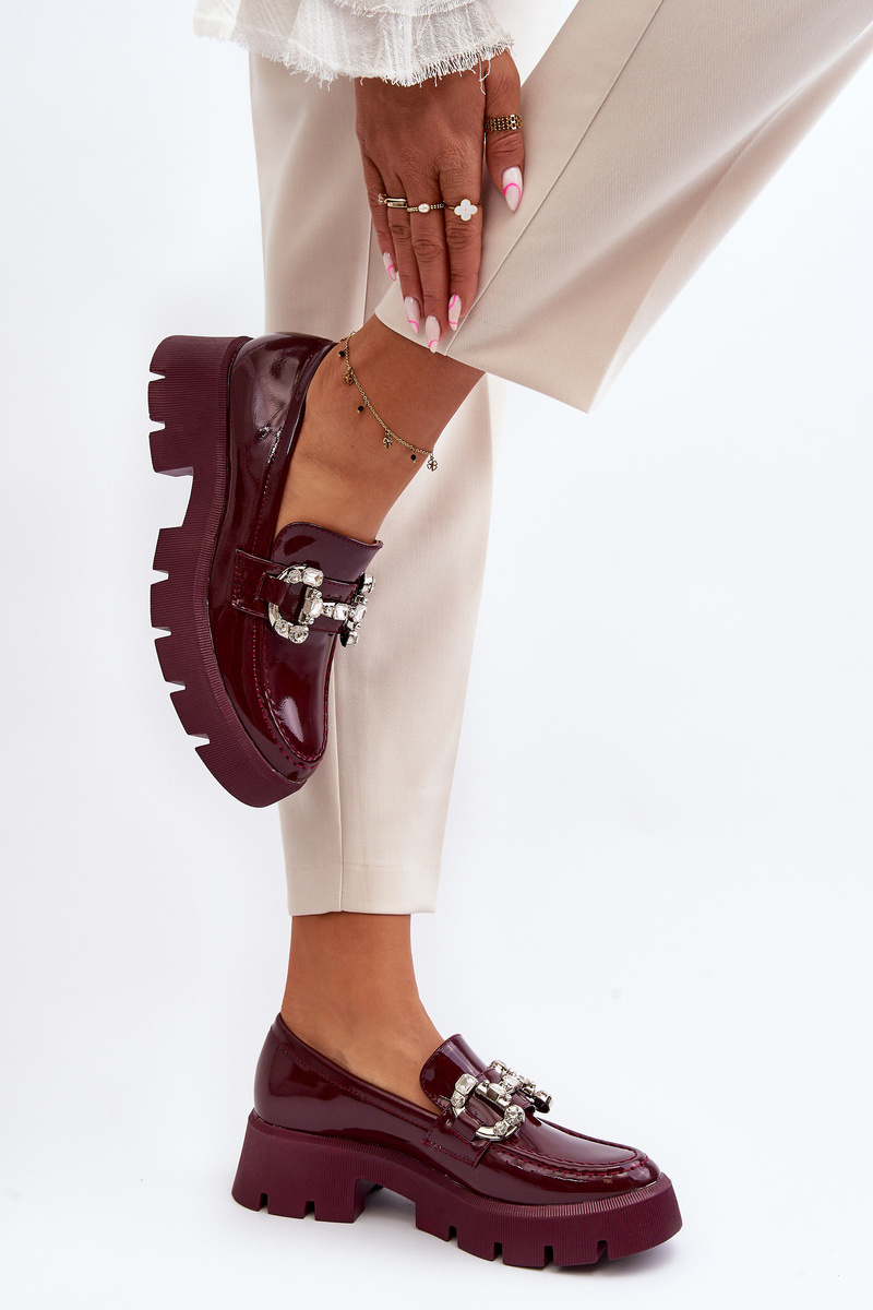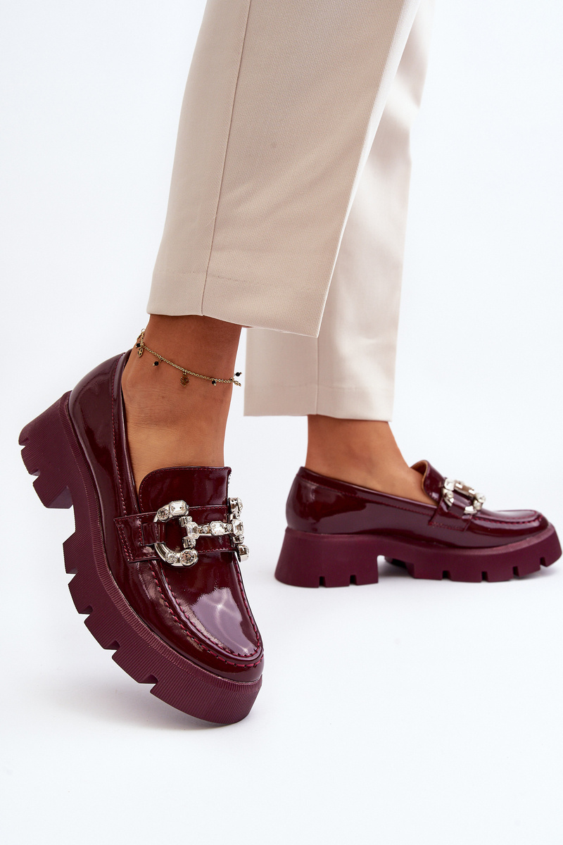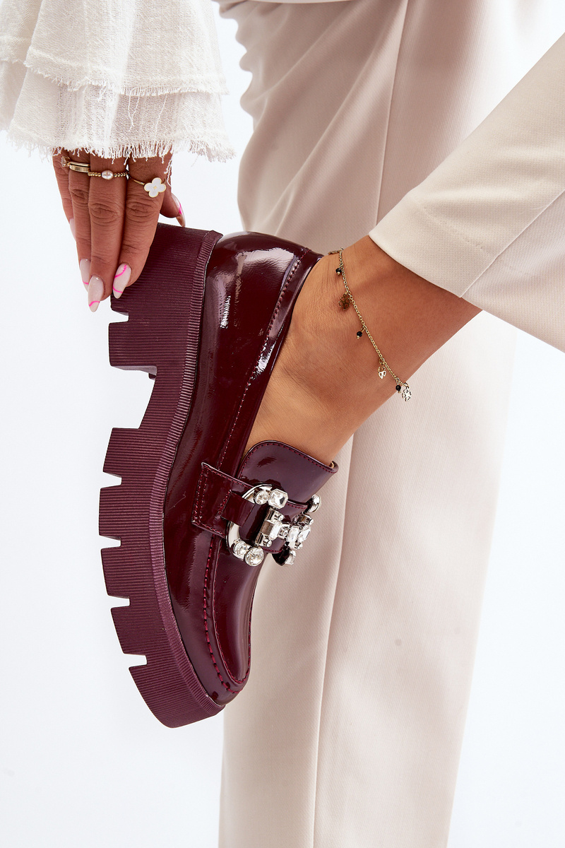 Dámske lakové mokasíny s ozdobou bordová Arsaba