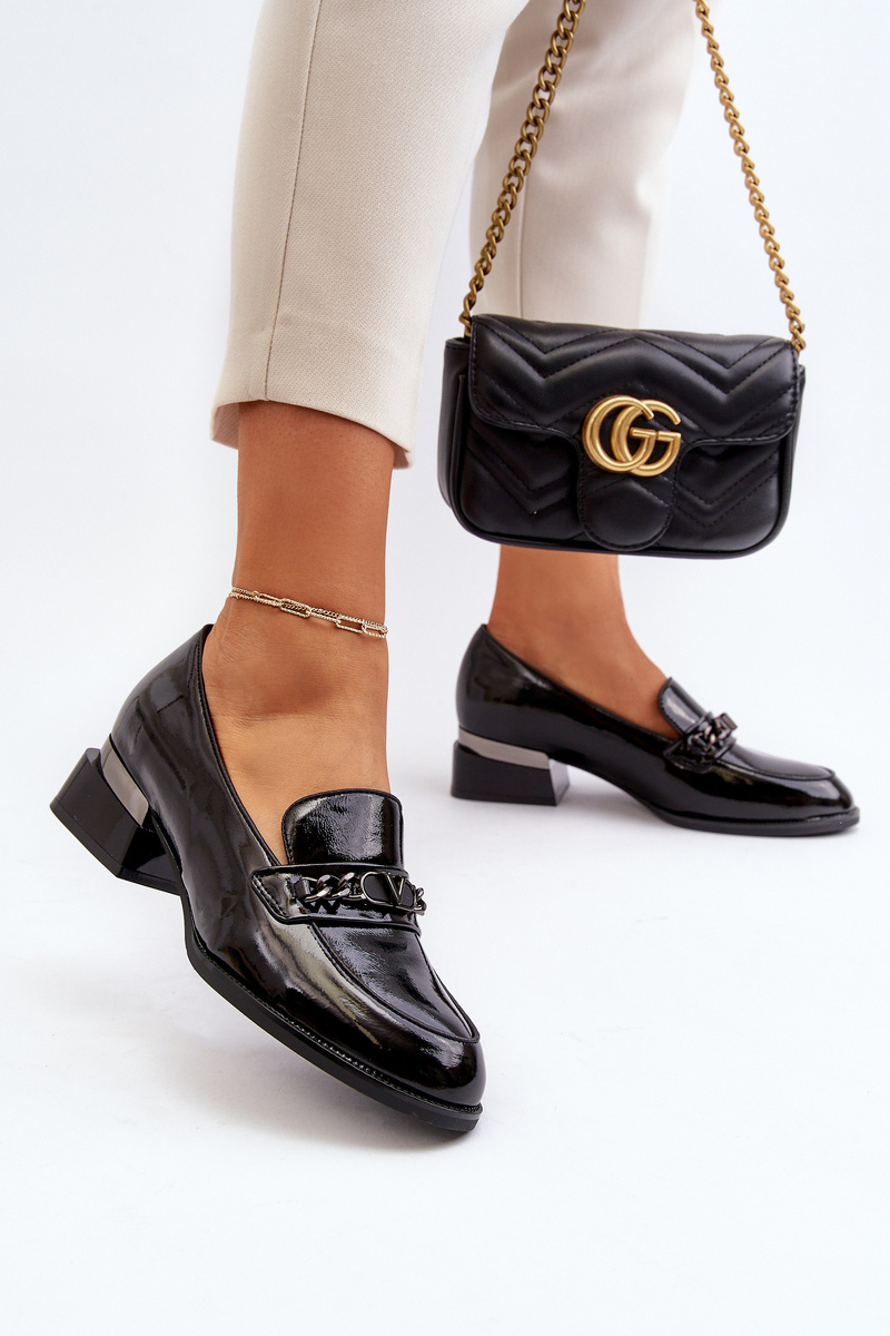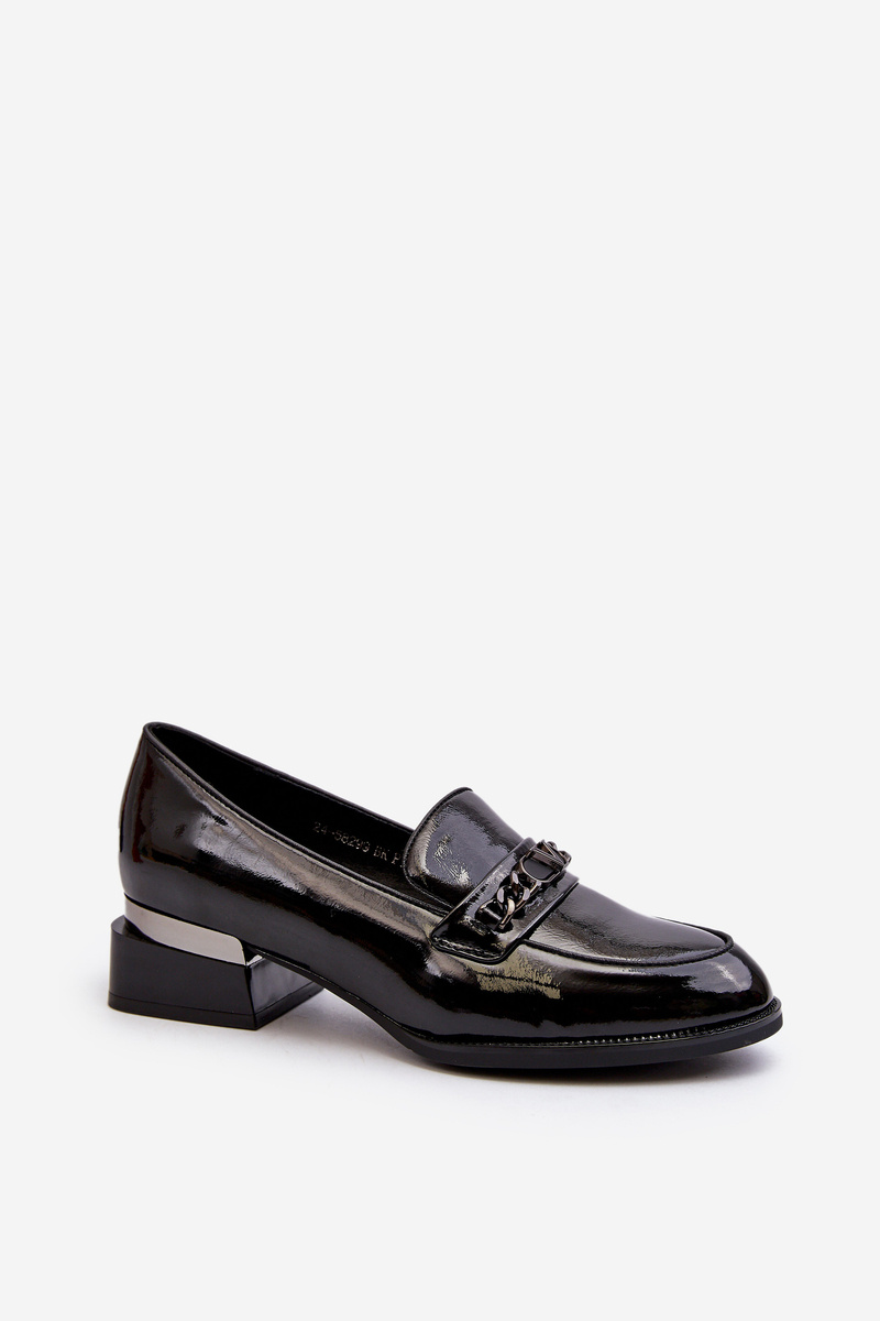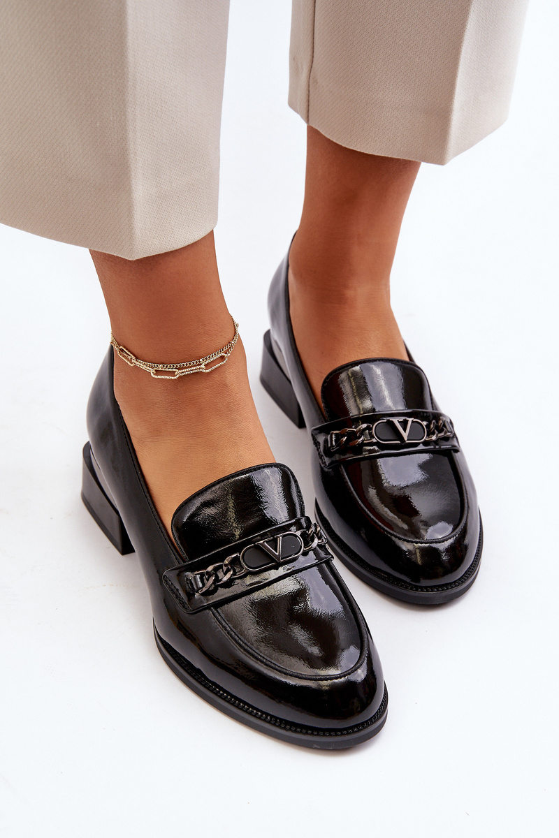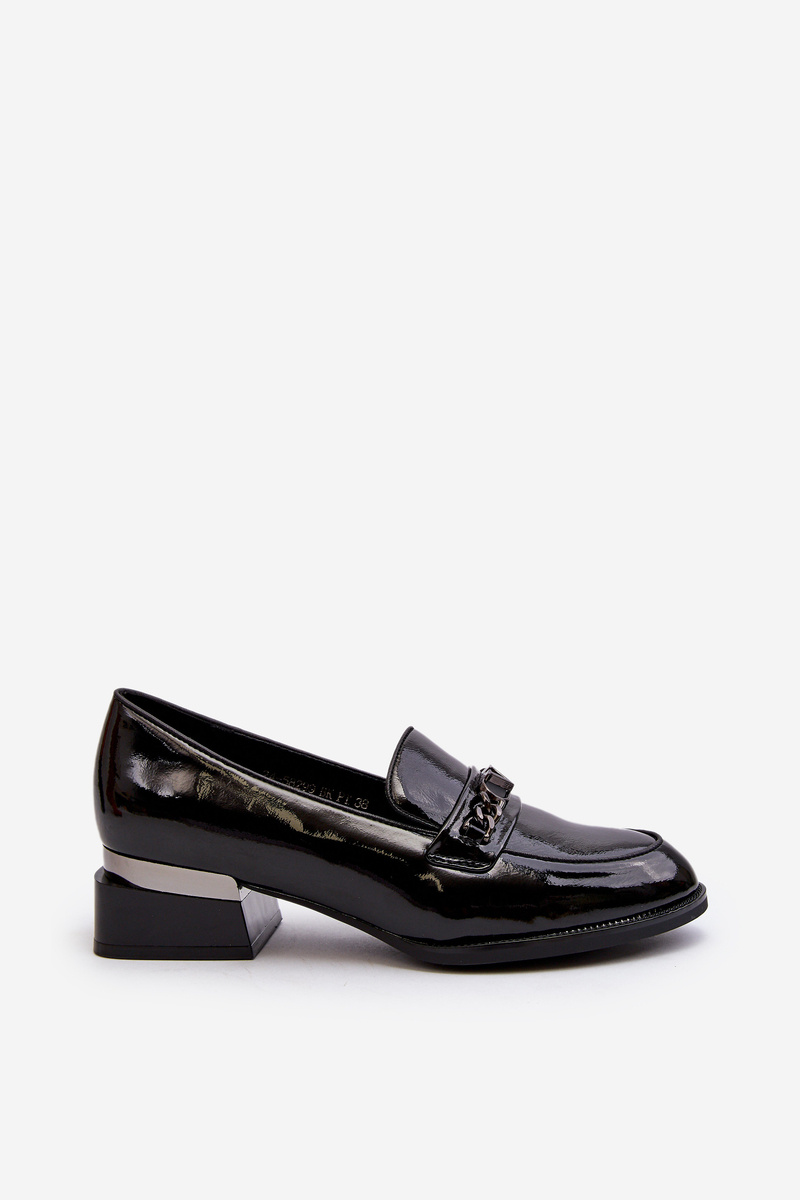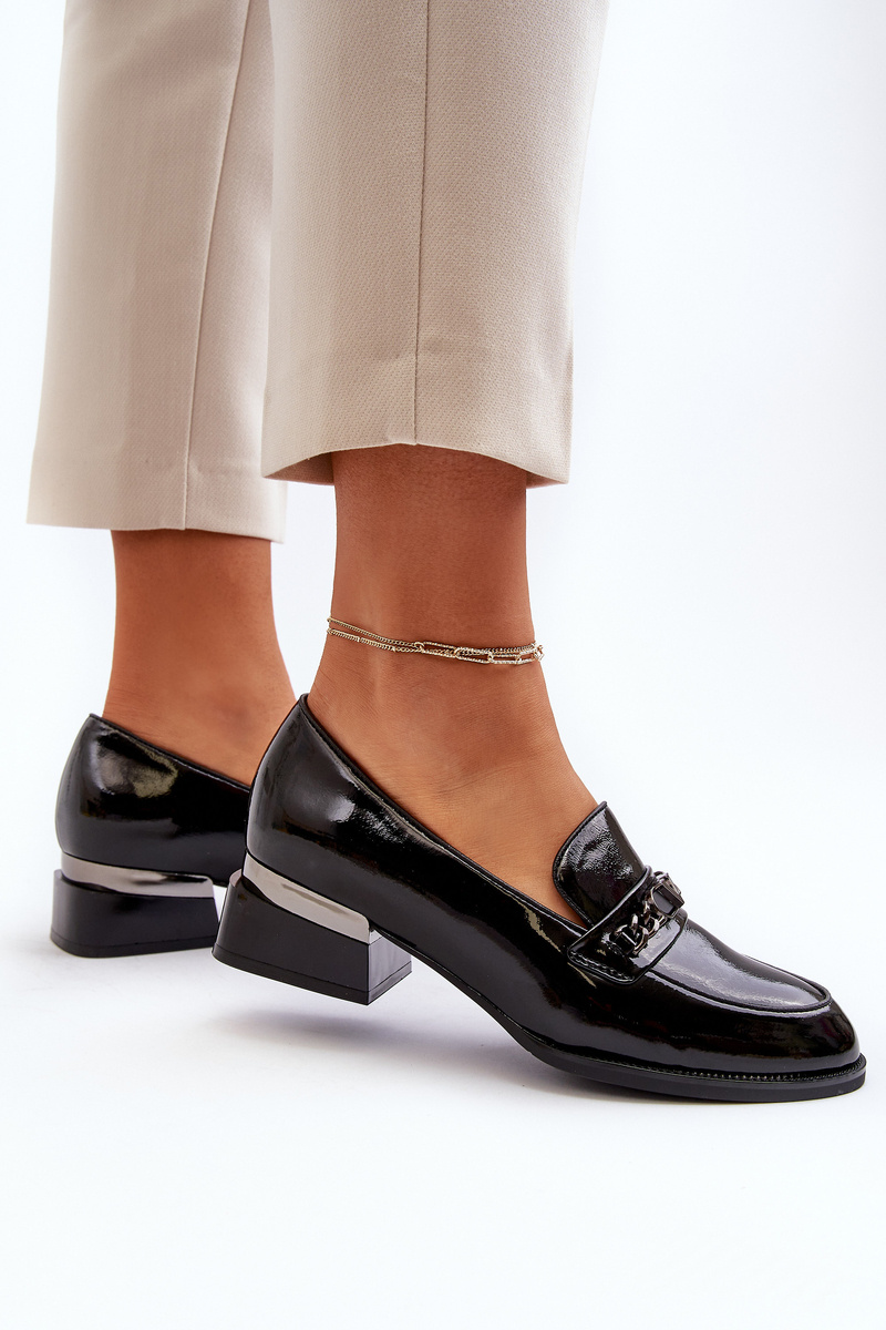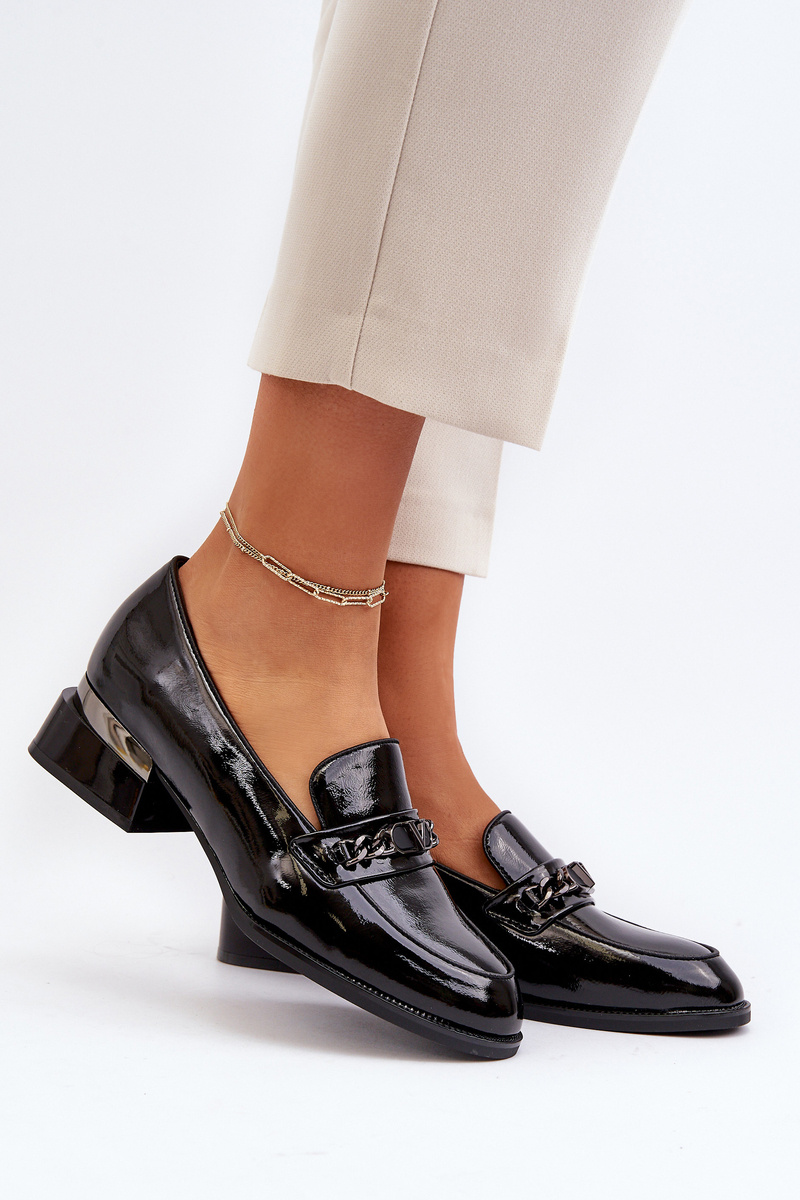 Dámske lesklé čierne topánky na nízkom opätku Albreide