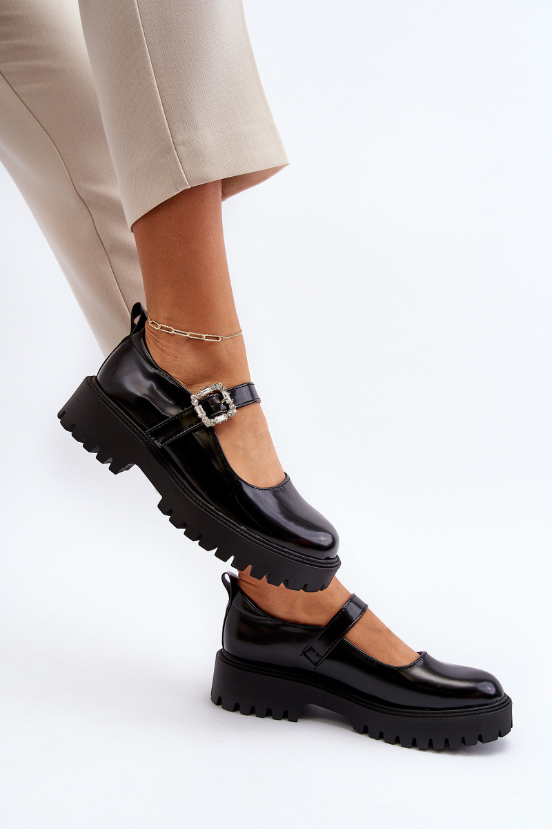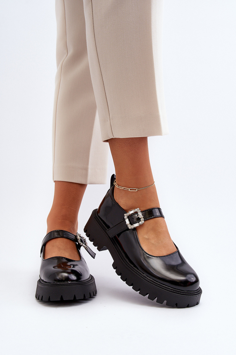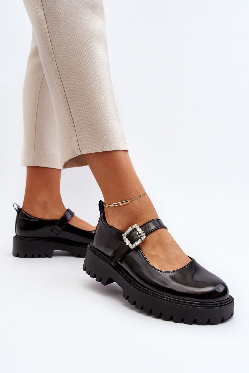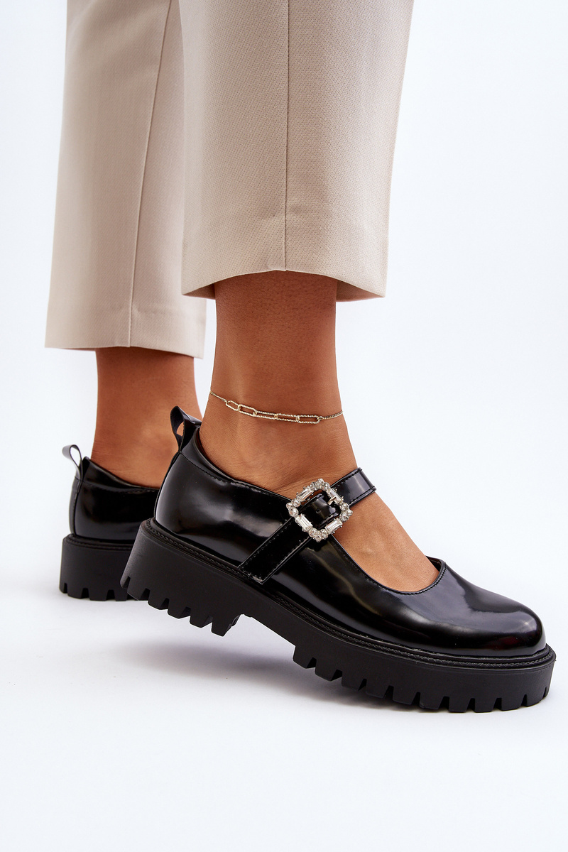 Dámske lesklé poltopánky s ozdobnou sponou čierne Lindnessa