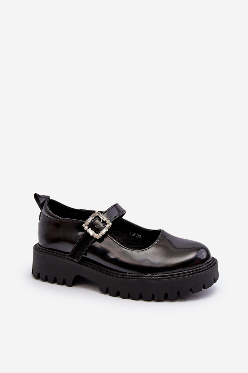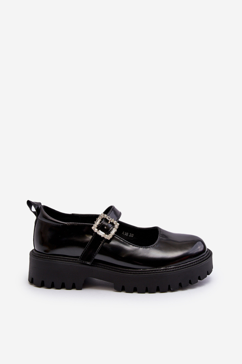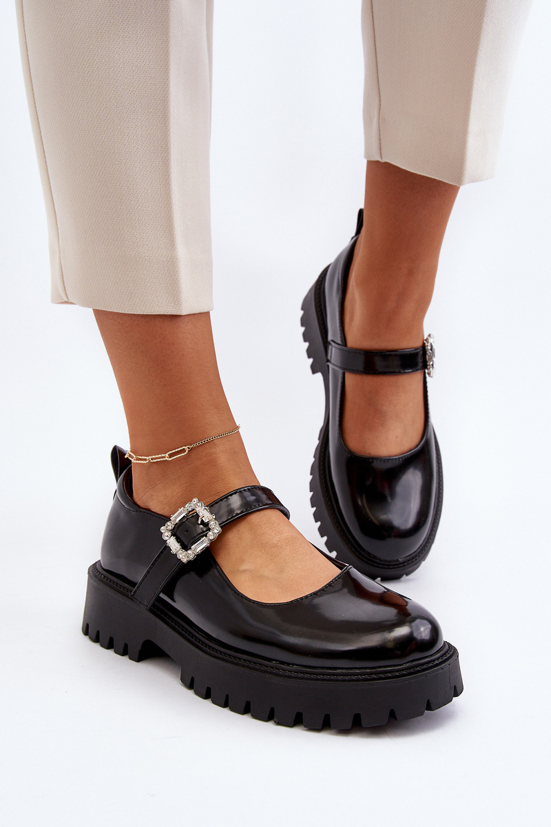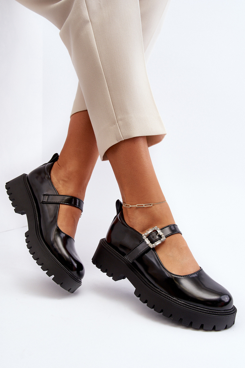Dámske lesklé poltopánky s ozdobnou sponou čierne Lindnessa