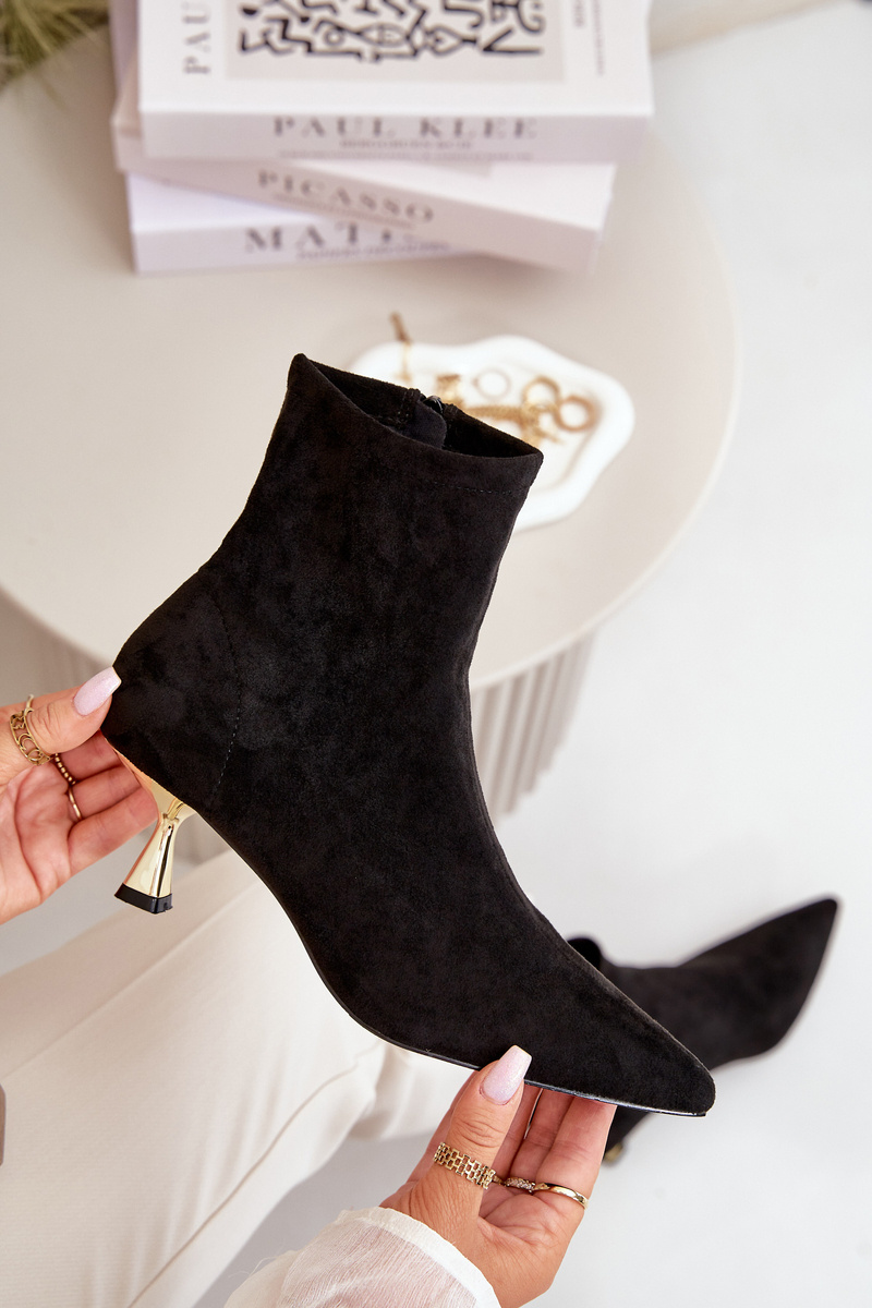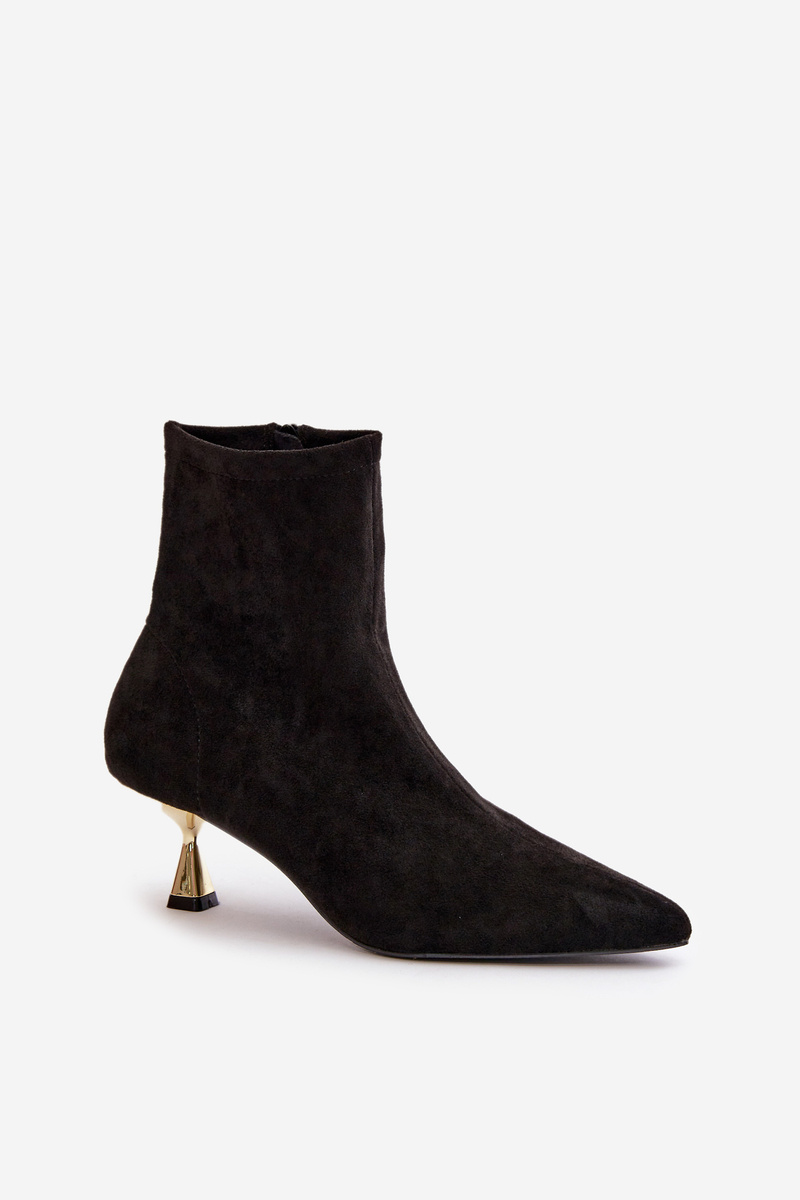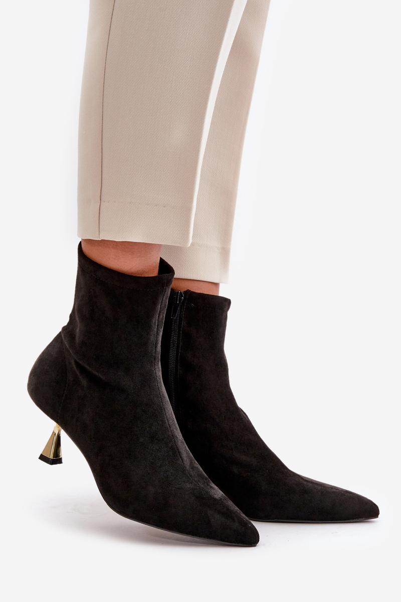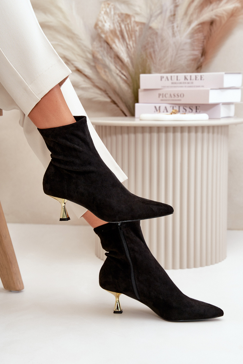 Dámske Lodičky Na Opätku Eko Semišové S Špičatými Noskami Čierne Irithare