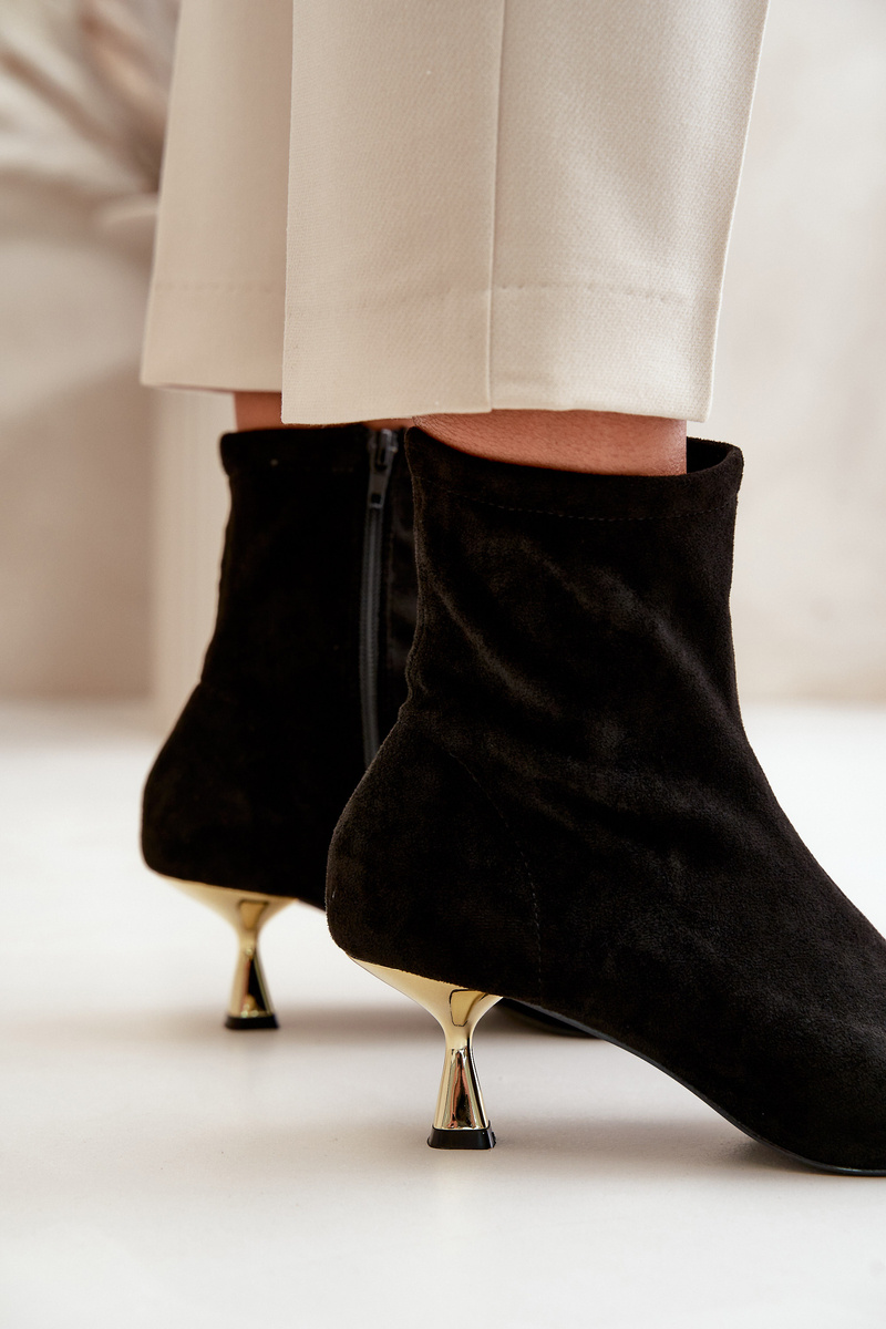 Štýlové dámske čižmy na dekoratívnom podpätku sú elegantným doplnkom, ktorý určite pritiahne pohľady. Vyrobené z eko semišu. Zapínanie na zips zabezpečuje pohodlie a jednoduché obúvanie. Špicaté prsty dodávajú rafinovaný charakter, zvýrazňujúc ženskosť a štíhlosť postavy. Ideálne na špeciálne príležitosti, ako aj na každodenné štýly, keď chcete pridať trochu elegancie. Při výběru velikosti se řiďte tabulkou velikostí.
