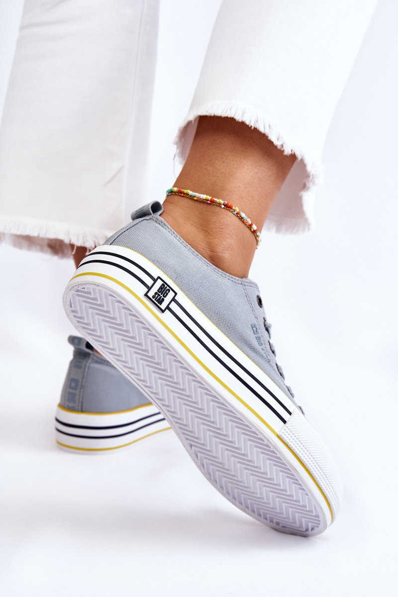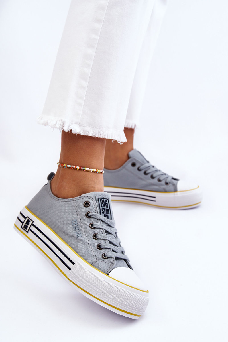 Dámske tenisky boli vyrobené z textilného materiálu. Klasicky šnurovaný model. Topánky boli umiestnené na masívnej gumovej plošine s podrážkou. Vložka materiálu zabezpečí pohodlie počas používania a stuhnutá päta zabezpečí primeranú stabilizáciu chodidla. Tento model je vynikajúci pre mnoho každodenných štylizovaní. Pri výbere veľkosti navrhnite tabuľku veľkosti.