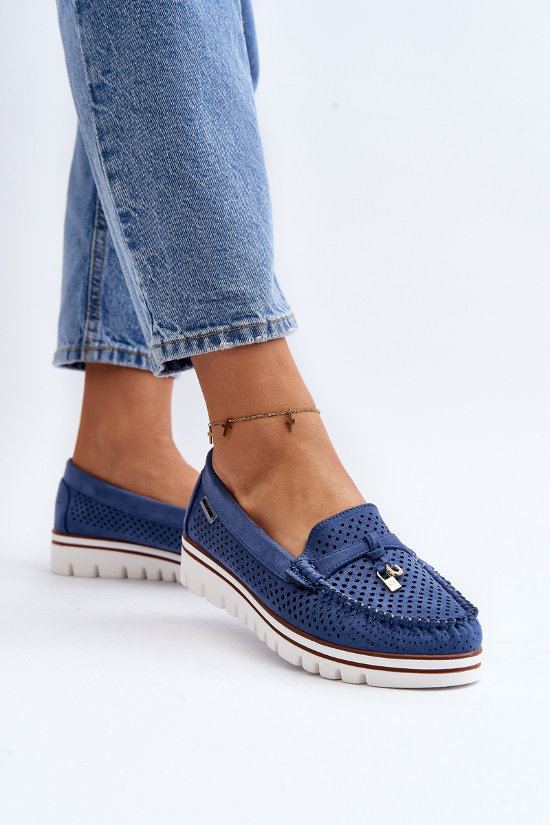 Priehľadné mokasíny vyrobené z ekologického semišu. Umiesnené na platforme. Mäkká stielka z pravej kože zabezpečí pohodlie počas nosenia. Skvelý model pre mnoho jarno letných štýlov! Při výběru velikosti se řiďte tabulkou velikostí.