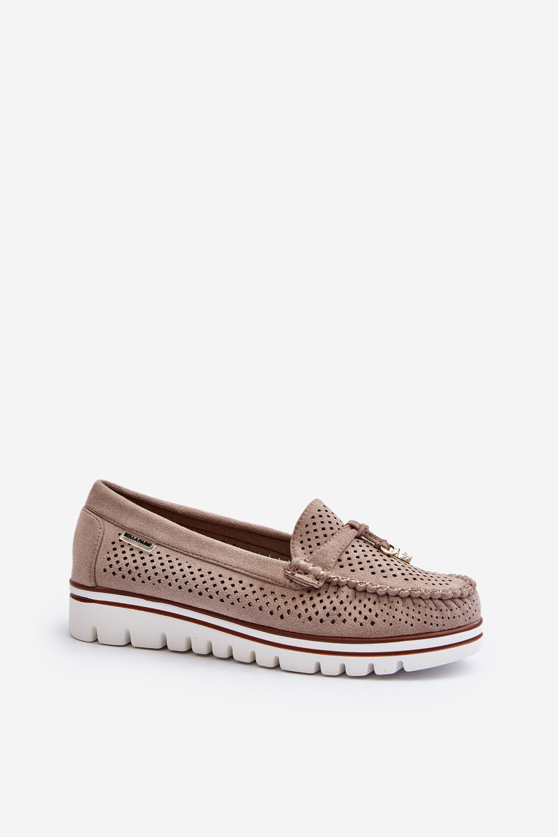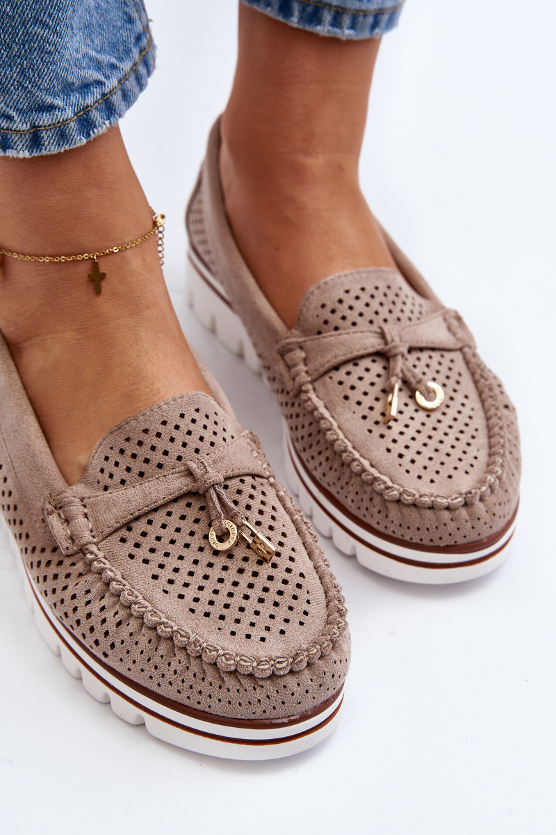 Prezutie mokasíny vyrobené z ekologického semišu. Umiestnené na platforme. Mäkká stielka z prírodnej kože zabezpečí pohodlie počas nosenia. Skvelý model pre mnoho jarne letných štýlov! Při výběru velikosti se řiďte tabulkou velikostí.