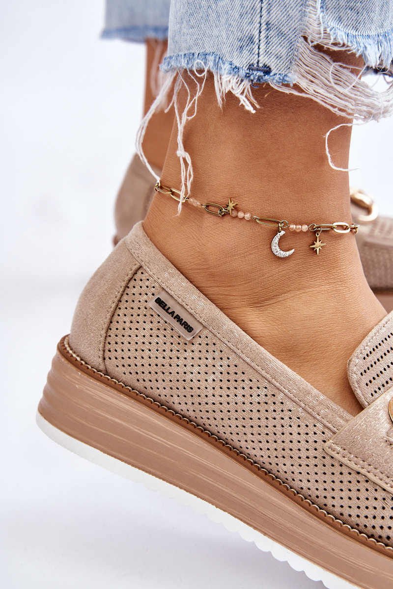 Klasické dámske mokasíny boli zabudované na jemný klin a platformu. Vyrobené z materiálu podobného ekologickému semišu. Mäkká vložka vyrobená z prírodnej kože poskytne pohodlie počas používania. Okrem toho majú tieto mokasíry stuhnutú pätu. Na prednej strane je dekoratívny prvok. Ideálne pre mnoho štylizujúcich sa jari. Pri výbere veľkosti navrhnite tabuľku veľkosti. p>