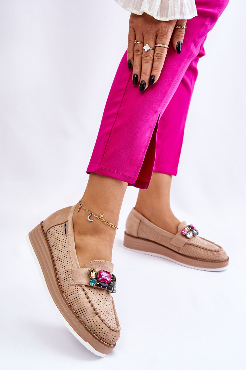 Dámske mokasíny na platforme s béžovými dekoráciami Adlyn