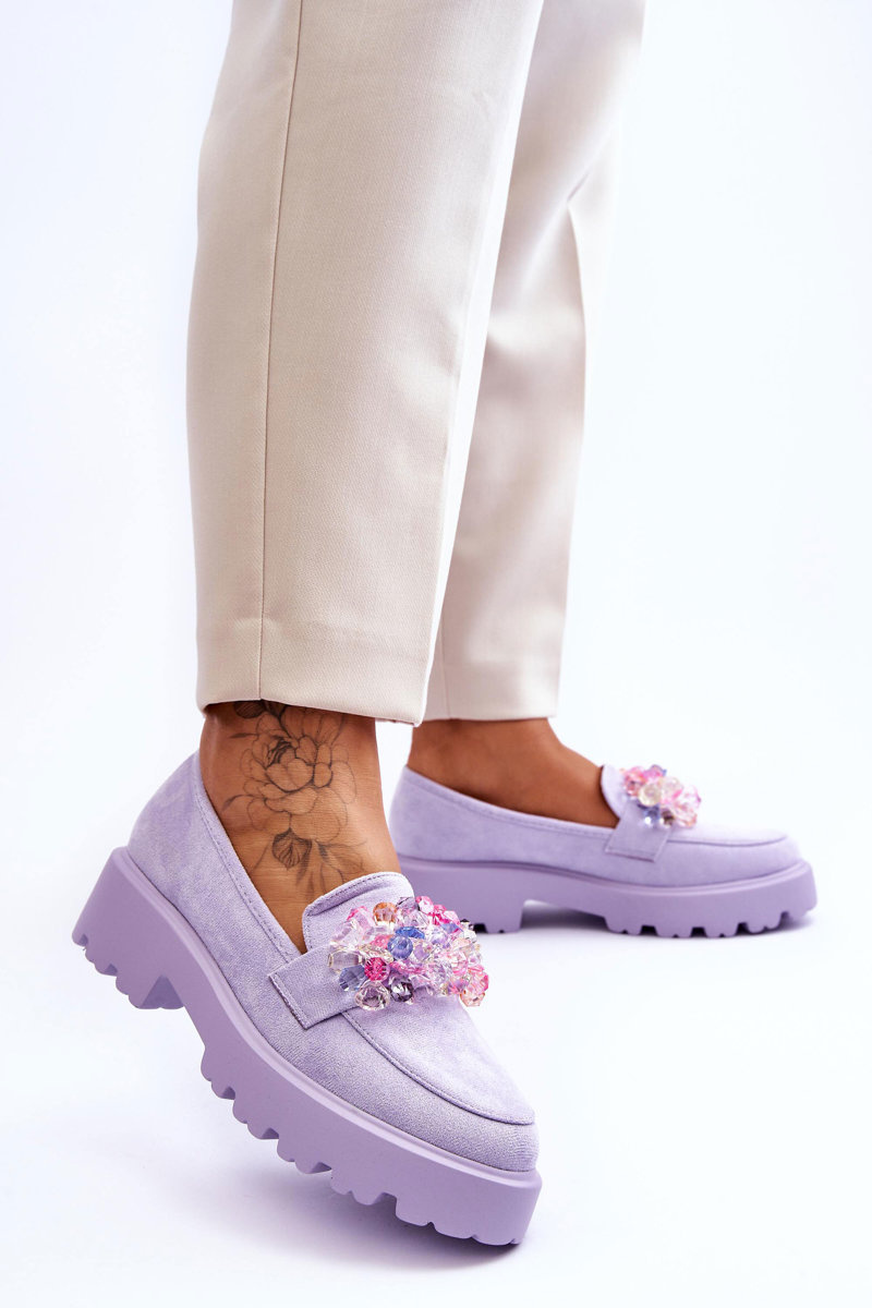 Dámske mokasíny na platforme s dekoráciami fialová brenda