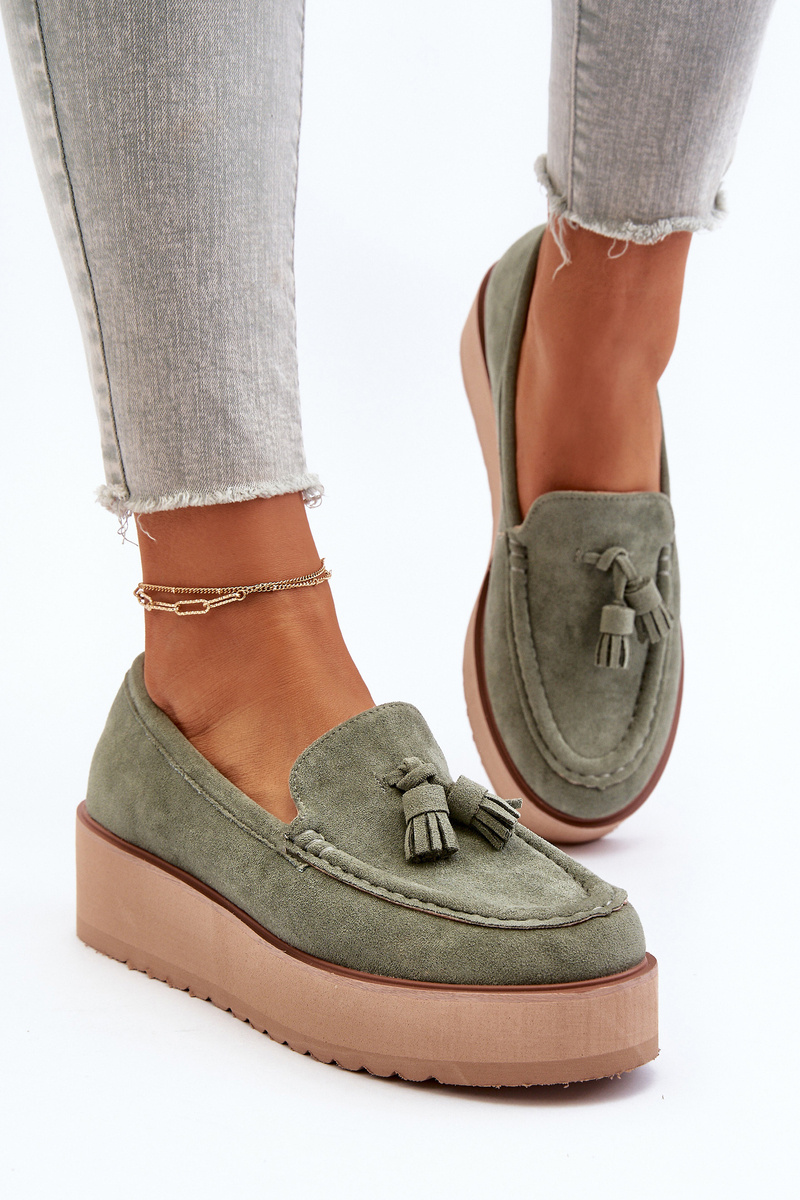 Dámske mokasíny na platforme s franžuľami zelené Mialani