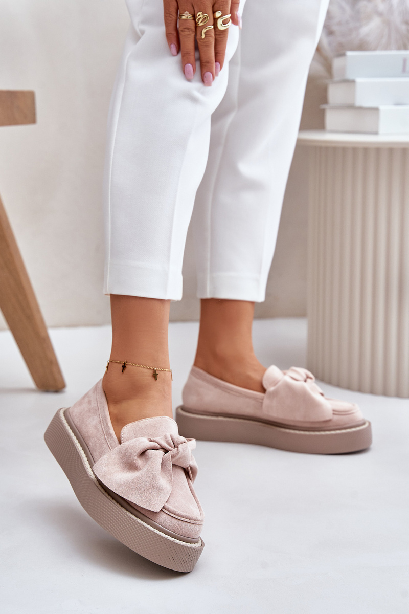 Dámske Mokasíny Na Platforme S Mašľou Pudrová Rúžová Naivine