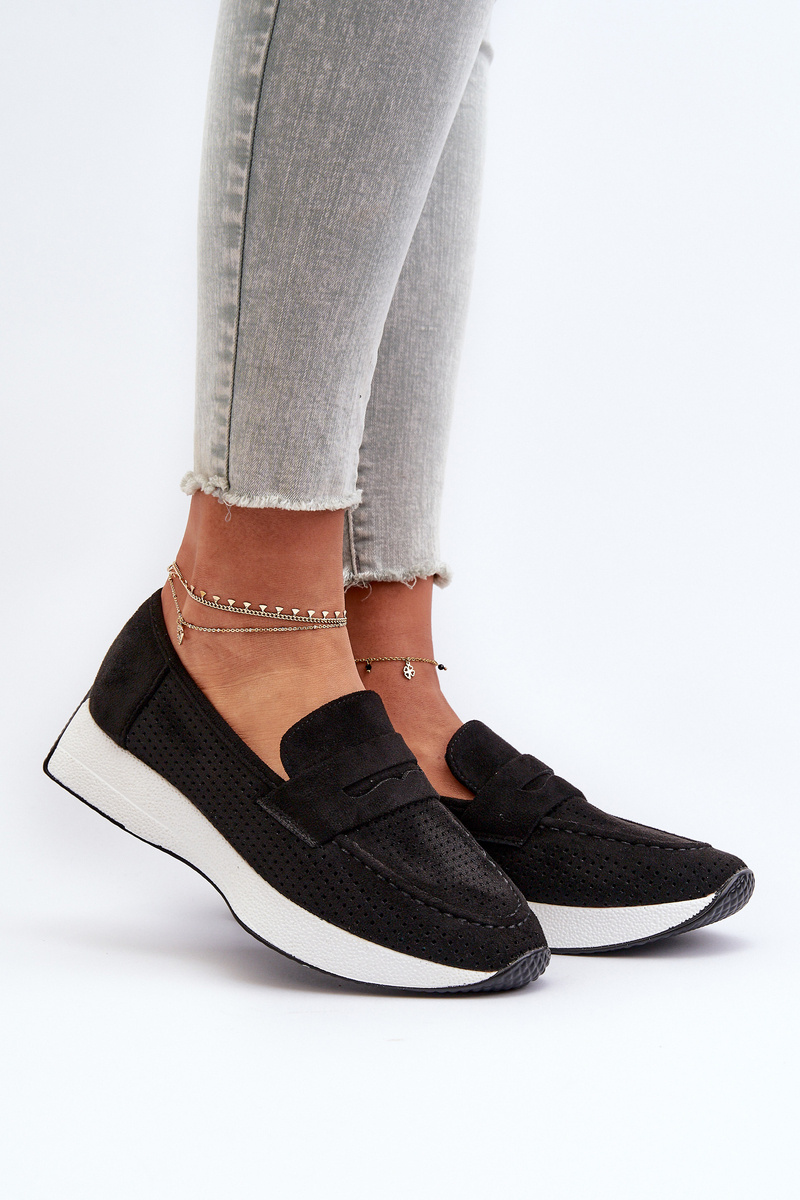 Dámske mokasíny na platforme z čiernej eko-zamše Inesqua