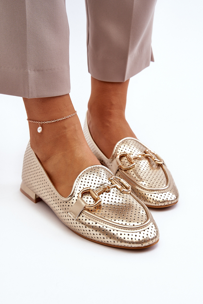 Dámske mokasíny na plochom opätku s ozdobou zlaté Iluvana