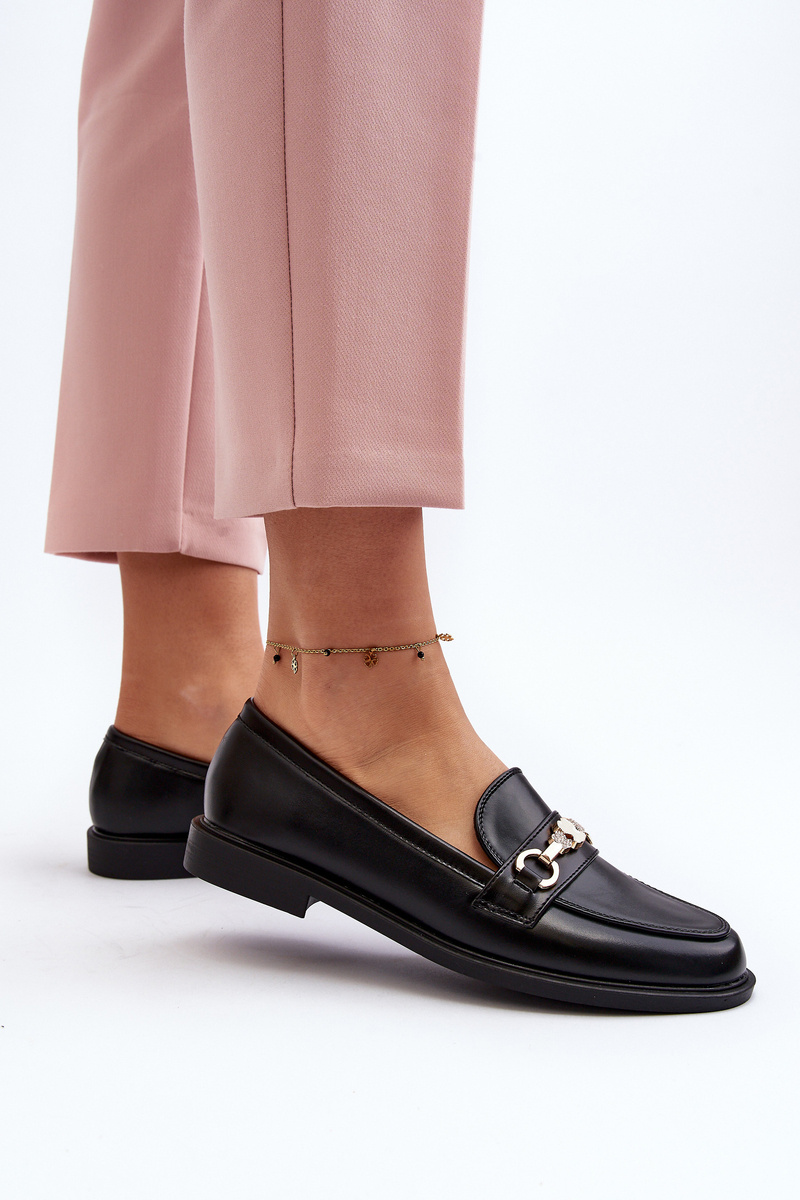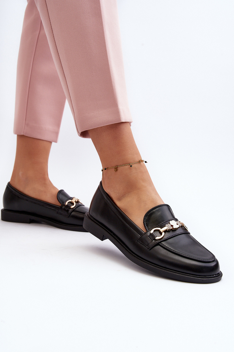Dámske mokasíny na plochom podpätku z eko-kože čierne Vimedia